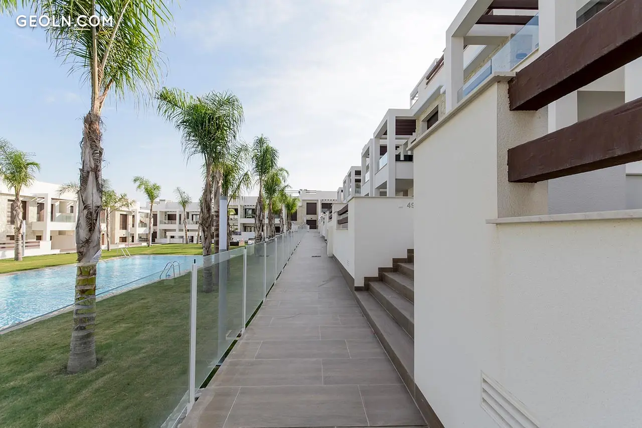 Balcones de Vivi ist eine gemütliche Bungalowresidenz in der Urbanisation Lago Jardín II in Torrevieja, südlich der Costa Blanca, mit atemberaubendem Blick auf die Lagunen der Stadt. Diese Residenz besteht aus Bungalows mit 2 und 3 Schlafzimmern und 2 Badezimmern und bietet Ihnen die Wahl zwischen Häusern im Erdgeschoss mit Garten und Terrasse oder Häusern im Obergeschoss mit Terrasse und privatem Solarium. Alle Häuser verfügen über Einbauküchen, Bäder mit Einbauschränken, Duschabtrennungen und Fußbodenheizung, sowie Vorinstallation einer Klimaanlage. Darüber hinaus besteht die Möglichkeit einer Garage und eines Abstellraums. Die Wohnanlage wird durch schöne Gemeinschaftsbereiche mit Gärten und zwei Gemeinschaftspools ergänzt.