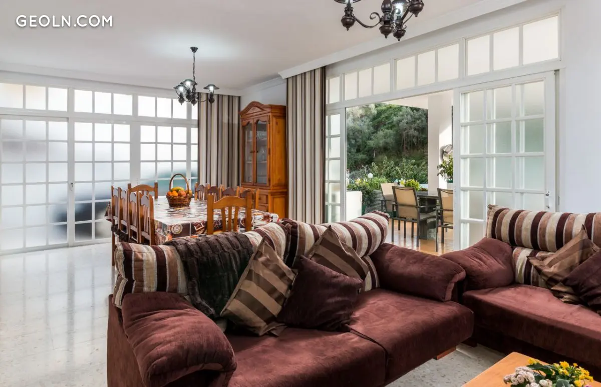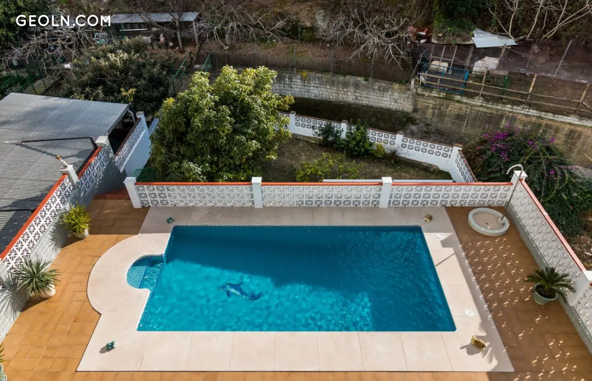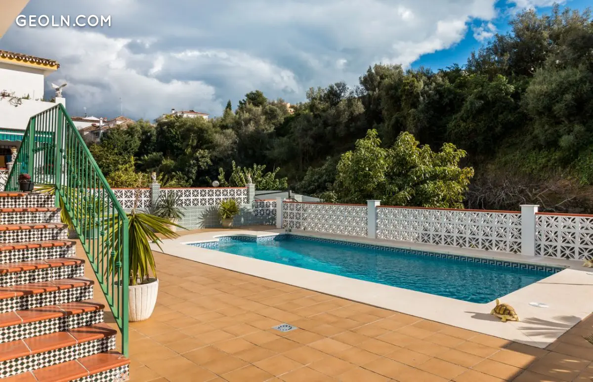 Villa mit gepflegtem Garten und privatem Pool 34 m2, großes Wohn-Esszimmer, Marmorböden, Carport, voll ausgestattete Küche, Badezimmer, Klimaanlage, Kamin, geräumige Terrassemi mit Panoramablick, Gegensprechanlage, 100 m2 Keller und Sonnenkollektoren.