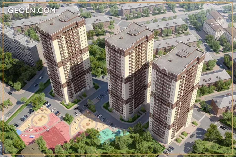 Große Fenster und ein harmonisches Farbschema der Fassade verleihen den Gebäuden ein ansehnliches Aussehen und machen sie von weitem erkennbar. Dank dieser erfolgreichen architektonischen Lösungen fügt sich das neue Gebäude perfekt in die umgebende Stadtentwicklung ein.