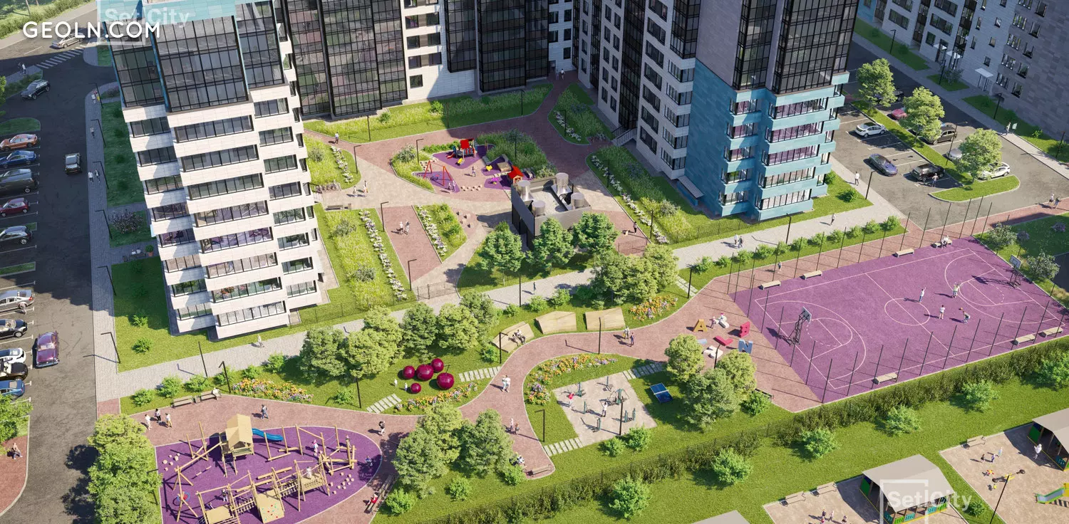 In den ersten Stockwerken von ArtLine wird der Straßenhandel stattfinden: Geschäfte, Cafés, eine Bäckerei, ein Schönheitssalon und vieles mehr. Alles, was Sie brauchen, können Sie auf dem Heimweg von der U-Bahn kaufen. Im Innenhof wird es einen privaten Kindergarten mit Grundschulklassen geben, dessen Territorium um den Umfang herum angelegt und eingezäunt ist. Das Projekt verfügt über einen eigenen dreistöckigen Fitnessclub mit Yogahallen und einem Volleyballfeld.