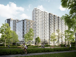 Wohnkomplex an der Ave. Toreza, 77, befindet sich in der Nähe der Kreuzung mit der Vitkovskogo-Straße im Stadtteil Vyborgsky in St. Petersburg in unmittelbarer Nähe des Sosnovka-Parks im Bau. Das neue Gebäude befindet sich in einem Viertel, das von den Straßen Listnaya, Jacques Duclos und Toreza Avenue begrenzt wird.
