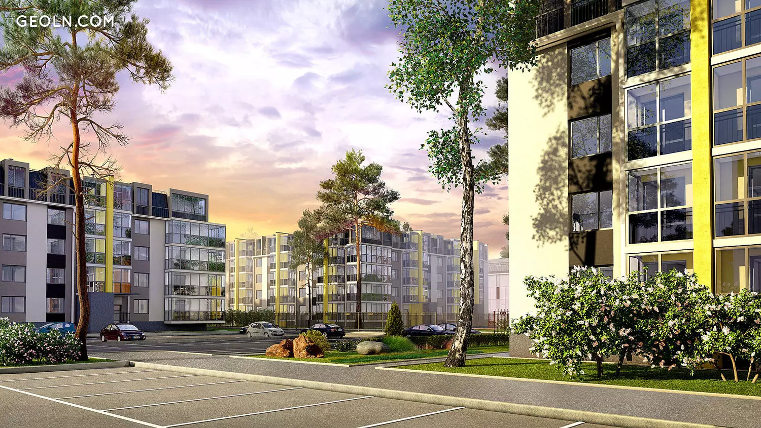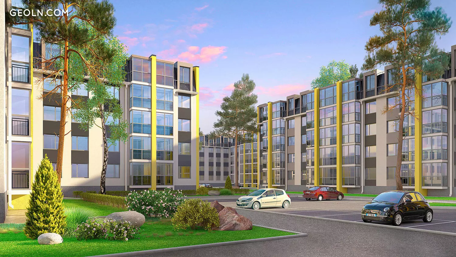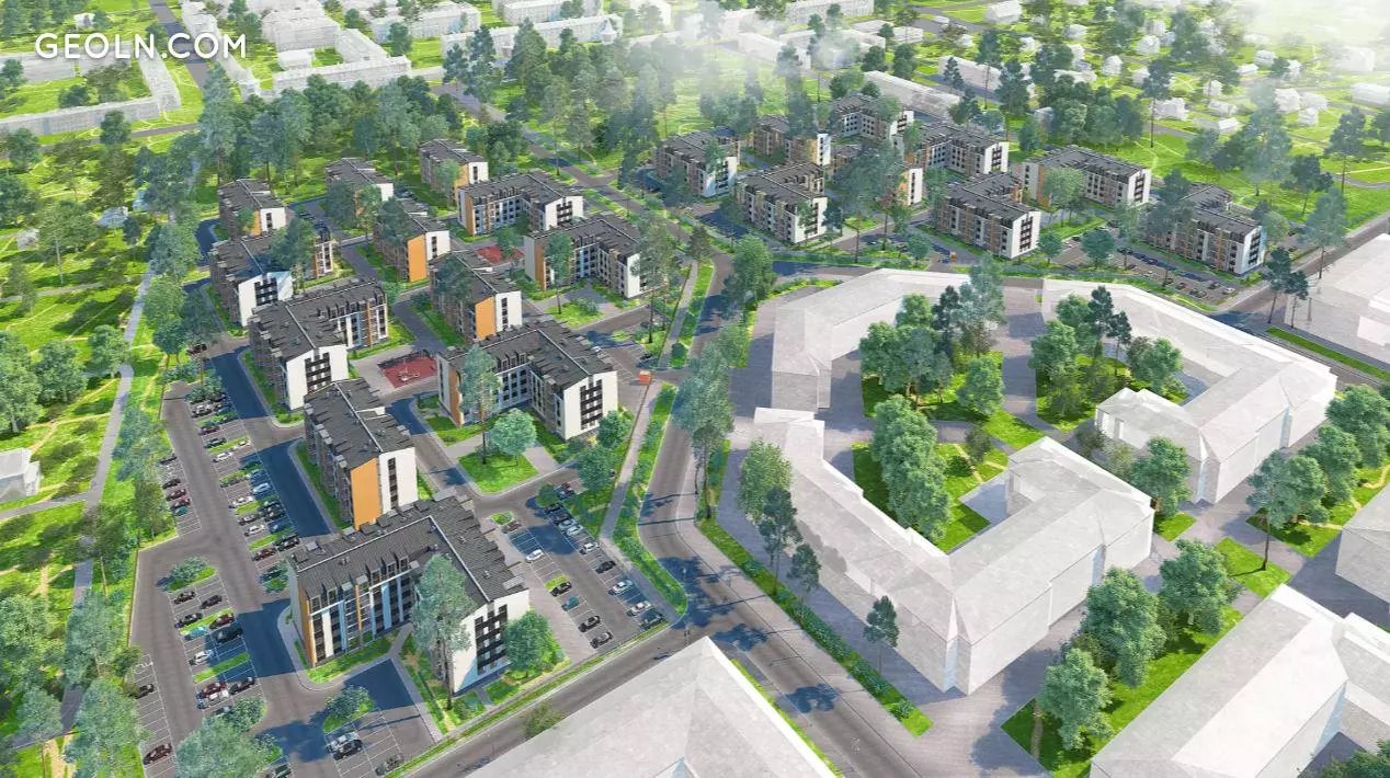 Die Fassaden der Neubauten sind im Stil der finnischen Architektur gestaltet. Die Häuser sind durch Rasenflächen und interne Einfahrten getrennt. Jeder Standort verfügt über einen eigenen Spielplatz, Sportanlagen und ausgestattete Erholungsgebiete. Sie werden bequeme Bänke haben.