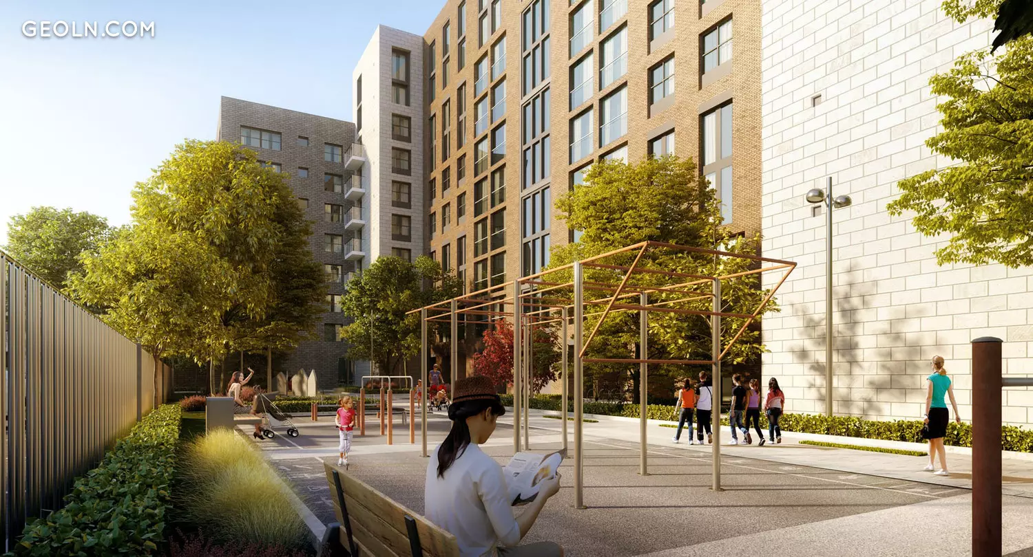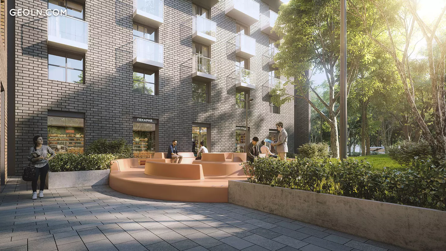 Auf dem angelegten Hof von VEREN NEXT Oktyabrskaya können Sie abends ruhig spazieren gehen oder die Kinder auf den Spielplatz gehen lassen, Ihren Geschäften nachgehen und sich keine Sorgen machen - das Gebiet ist eingezäunt und bewacht.