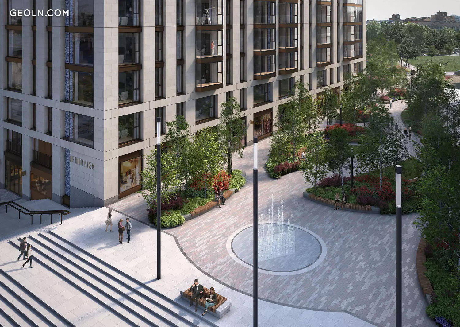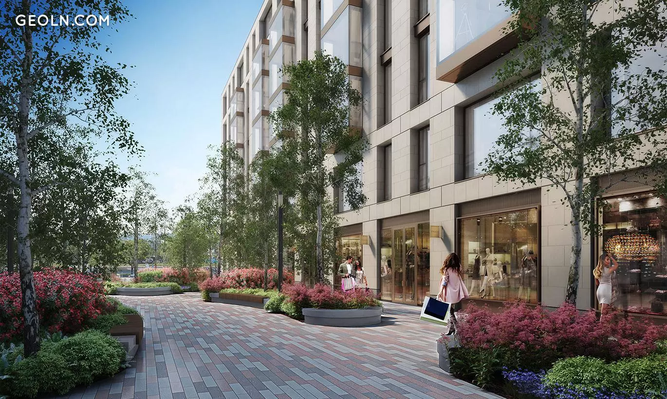 Im Erdgeschoss des Komplexes im Foyer befinden sich eine Rezeption, Wohnbereiche, eine Bibliothek, Sport- und Kinderspielbereiche. Ihnen folgen High-End-Geschäfte und Cafés.