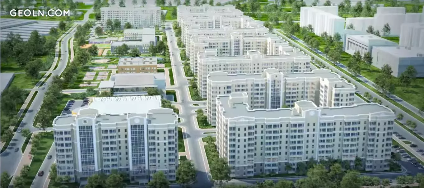 Für den Bau wurde eine Fläche von fast 14 Hektar bereitgestellt. Die Häuser werden schrittweise in Betrieb genommen. Der Komplex umfasst neun neunstöckige Plattengebäude.