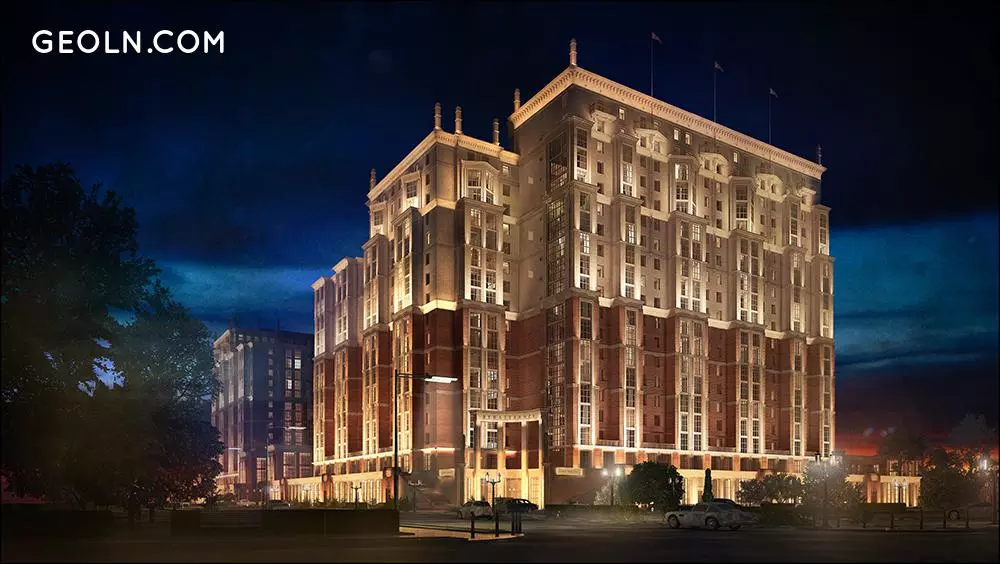 Wohnräume in Innenräumen verfügen über die richtige Wärme- und Schalldämmung. Häuser auf der Straße Dybenko, 8, zeichnet sich durch architektonisches Design aus, das im Stil des Neoklassizismus gestaltet ist. Um die architektonischen Formen des Wohnkomplexes hervorzuheben, werden die Fassaden der Gebäude mit dekorativer Beleuchtung ausgestattet.