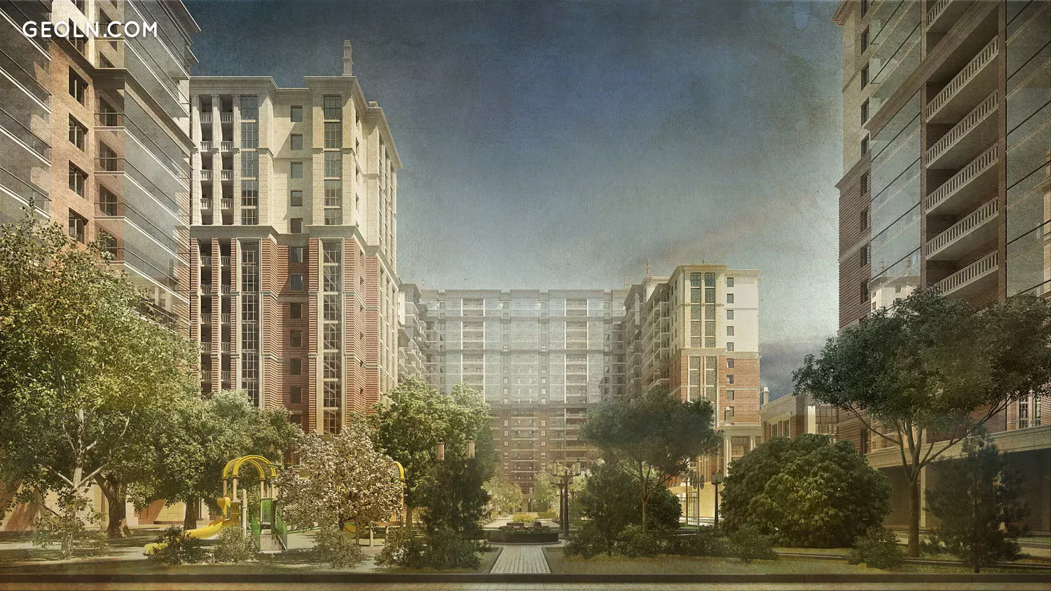 Die zentrale Gasse ist mit Pflastersteinen gepflastert. Es gibt ein Erholungsgebiet für Erwachsene. Diejenigen, die das Glück haben, eine Wohnung in der Wohnanlage Renaissance vom Entwickler AGG zu kaufen, können WLAN mit kostenlosem Zugang nutzen. Das Netzwerk erstreckt sich über den gesamten Innenhof.