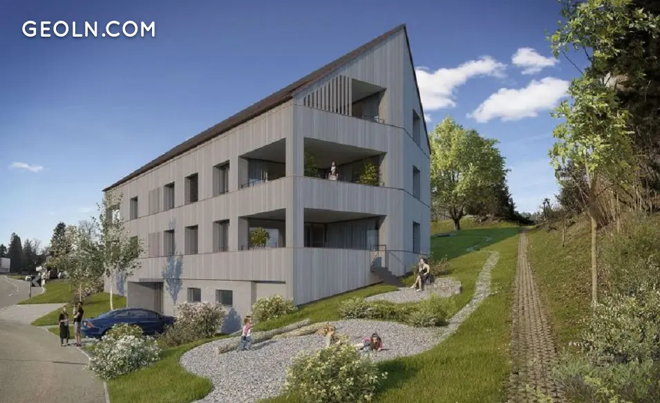 Wohnen am "Alberenberg" ist ein Projekt mit identitätsstiftender Architektursprache und traditionellem, aber zeitlosem Erscheinungsbild. Das dreigeschossige Mehrfamilienhaus mit Satteldach und ruhigem Volumen ist angenehm gross und überzeugt durch einen spannenden Mix aus konventioneller Gebäudetypologie und modernen Gestaltungselementen. Die Gebäudehülle besteht aus einer hinterlüfteten Holzfassade, welche das äussere Erscheinungsbild nachhaltig prägt und die hohe Wertigkeit der Überbauung unterstreicht.