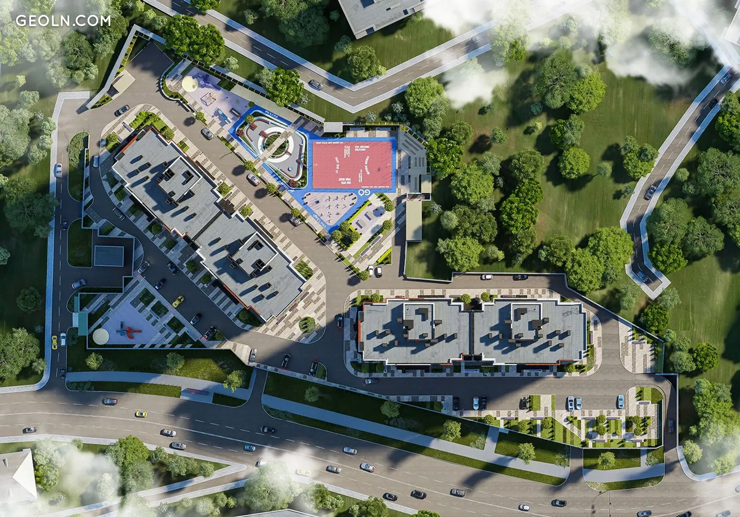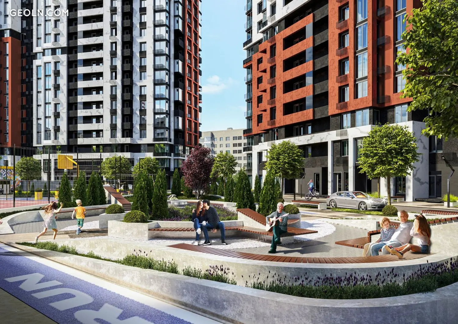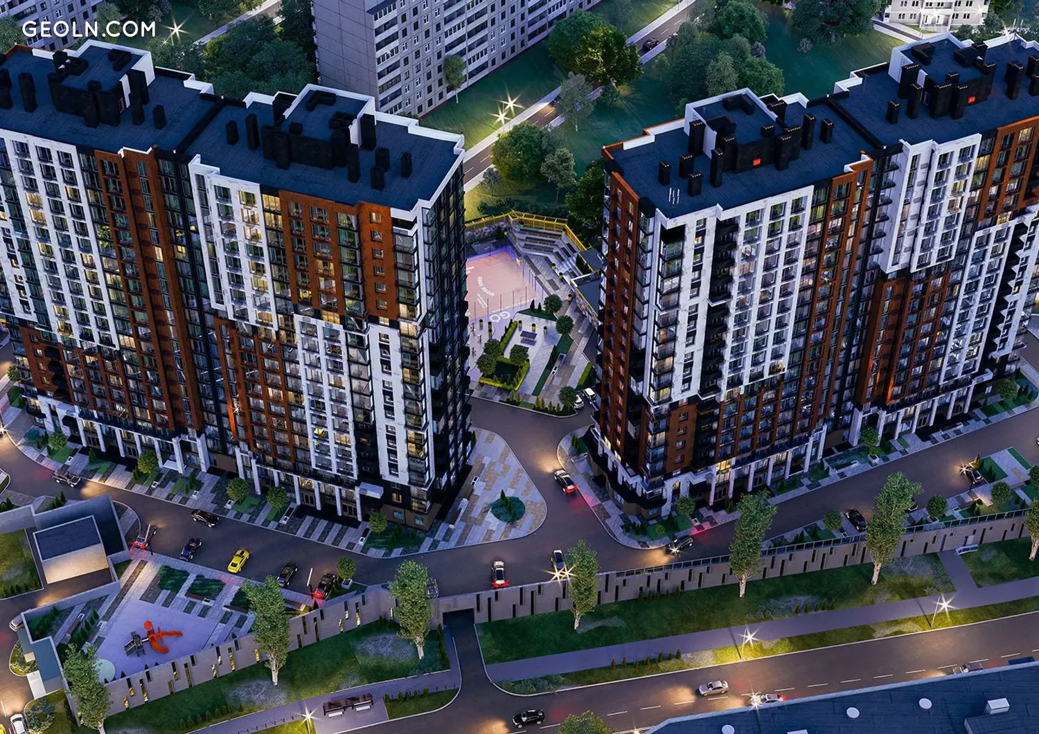 CITY HUB ist ein Apartmentkomplex im Infrastrukturzentrum des Bezirks Solomjanski. Die Häuser befinden sich näher an der Fahrbahn der Kudryashova-Straße, und das angrenzende Gebiet ist wie im Hinterhof - es wird einen Sportbereich mit Outdoor-Simulatoren, Erholungsplätzen und Kinderspielplätzen geben.
