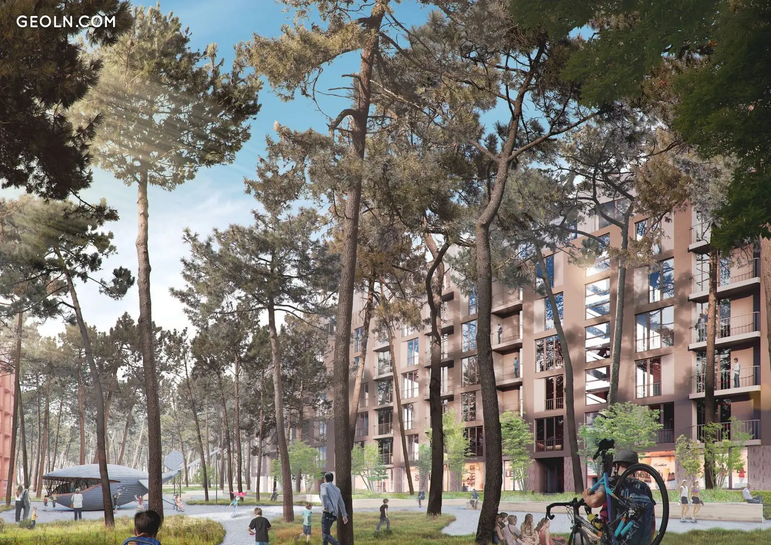 O2 Residence gleicht einer kleinen Stadt im Wald – es ist eine flache Wohnanlage mit 12 Häusern bis zu 7 Stockwerken. Das Format O2 Residence bietet konzeptionelle Infrastruktur, öffentliche Räume für die Bewohner und einen eigenen Öko-Bauernhof.