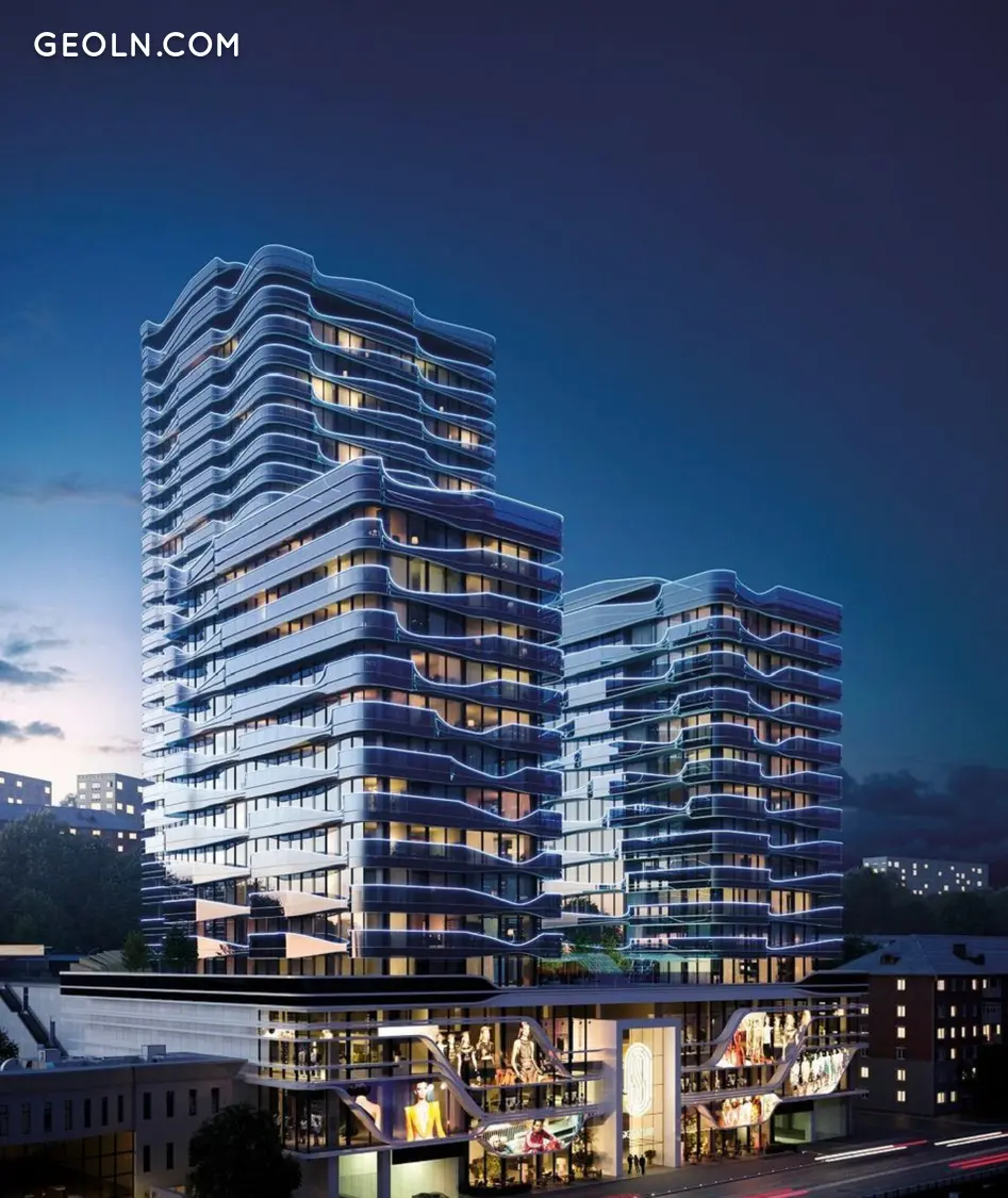 Während der Bauphase plant der Entwickler, drei Türme zu bauen - einen mit einer Höhe von 25 Stockwerken und zwei mit 12 Stockwerken, die sich auf einem 5-stöckigen Stylobat-Teil befinden werden. Die Dekoration der Fassade wird von Glas und Metall dominiert, die die Konstruktion des Gebäudes optisch leichter und luftiger machen. Wärmend - Thermoeinlagen Schoeck (Deutschland).