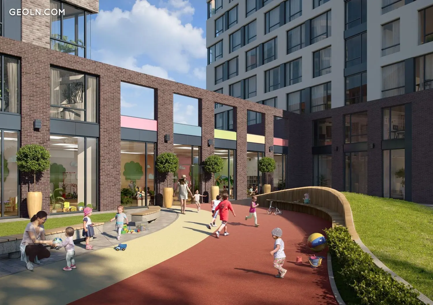 Es ist geplant, auf dem Territorium des Lucky Land-Komplexes eine eigene Schule zu bauen. Jedes Viertel hat einen eigenen Kindergarten.
