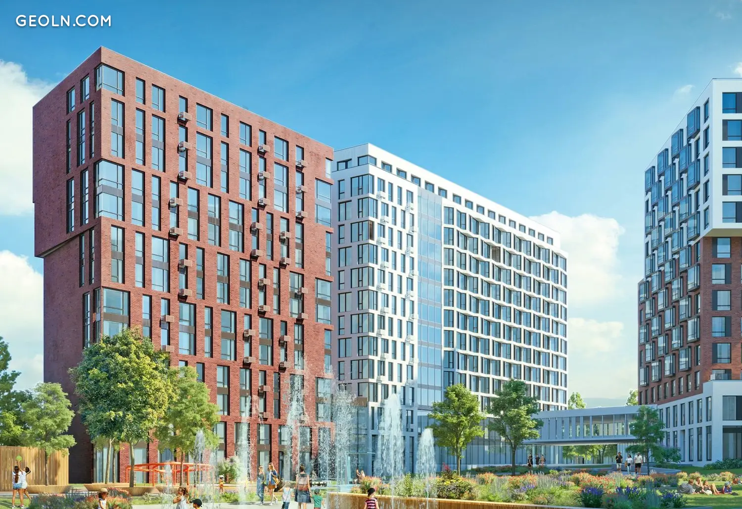 Um die Wirkung des Brunnens und das Fehlen von Sonnenlicht zu vermeiden, werden verschiedene Stockwerke verwendet. Das angrenzende Territorium ist als offener öffentlicher Raum mit Parkanlage, Erholungsplätzen, Kinderspielplätzen, Sportplätzen und Spazierwegen gestaltet. Insgesamt wird der Komplex über 8 Wohnquartiere und eine eigene Schule verfügen.