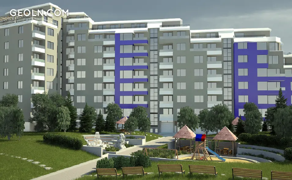 El complejo incluye dos edificios con apartamentos, estudios y tiendas, un patio verde con áreas de juegos para niños y áreas de recreación, dos niveles de sótano con garajes y estacionamientos para automóviles y bicicletas. El edificio 1 consta de las secciones A, B y C, este último se construirá en cooperación con la empresa Torin Tonchev. El edificio 2 incluye D y E. Las plantas bajas de los edificios tienen vestíbulos amplios y lujosos con asientos, áreas verdes y área de seguridad. Cada sección pone a disposición de sus ocupantes una sala compartida para bicicletas y cochecitos, local para herramientas de jardinería y local sanitario. El estacionamiento es fácil gracias a cómodas rampas y caminos de acceso para maniobrar.