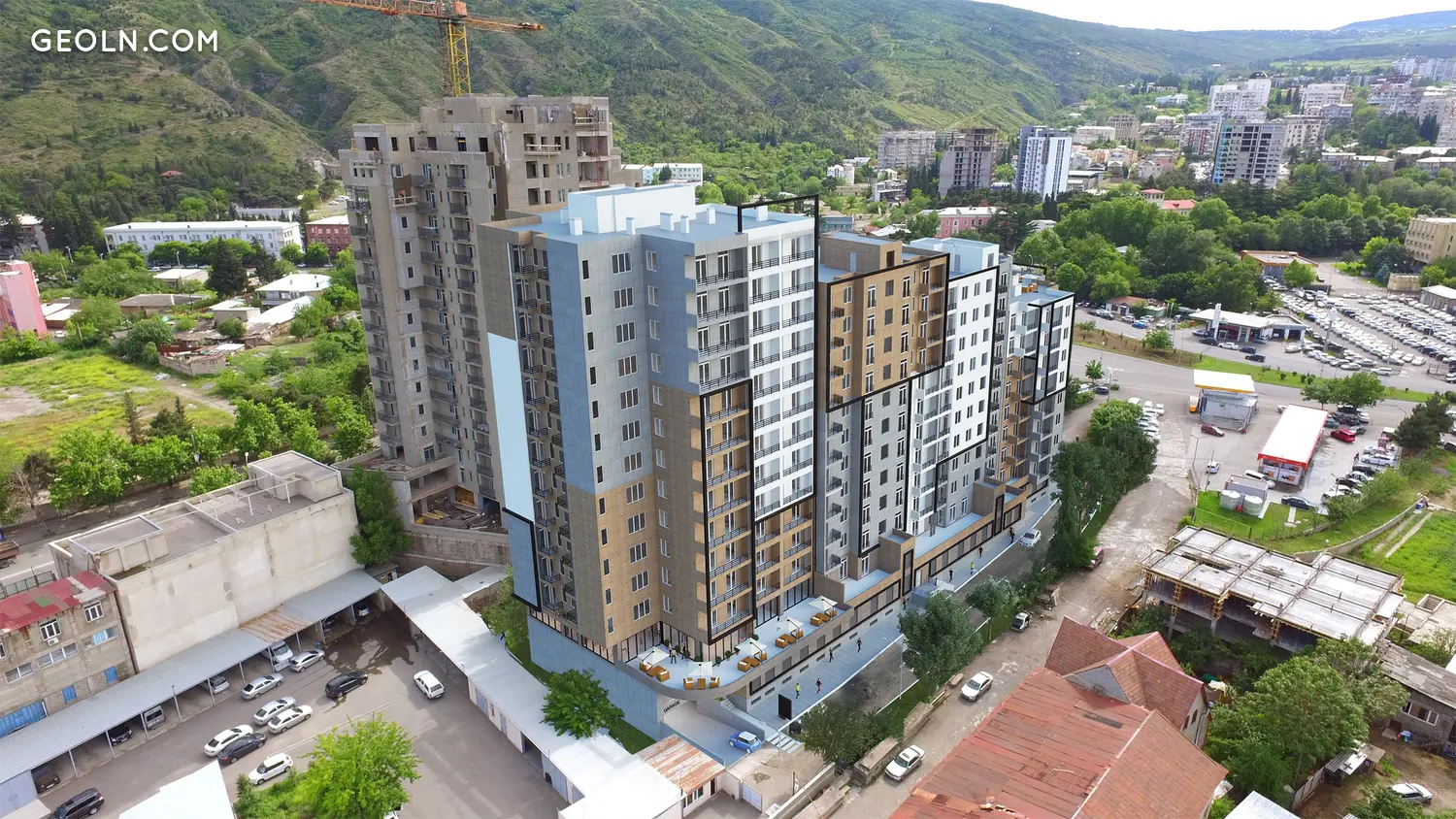 El edificio fue construido a solo unos minutos a pie de la estación de autobuses de Ortachala y de una gran intersección de tráfico de las calles Gulua y Vakhtang Gorgasali. Solo 300 metros separan el nuevo edificio del terraplén de Kura. Esta es una parte cómoda y completamente desarrollada de Tbilisi, donde los bienes raíces siempre están en demanda y aumentan de valor.