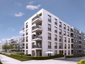 En la combinación de apartamentos, los prácticos apartamentos de 2 habitaciones se combinan con amplios planos de planta de 3 y 4 habitaciones. Un total de tres locales comerciales se distribuyen en las plantas bajas.