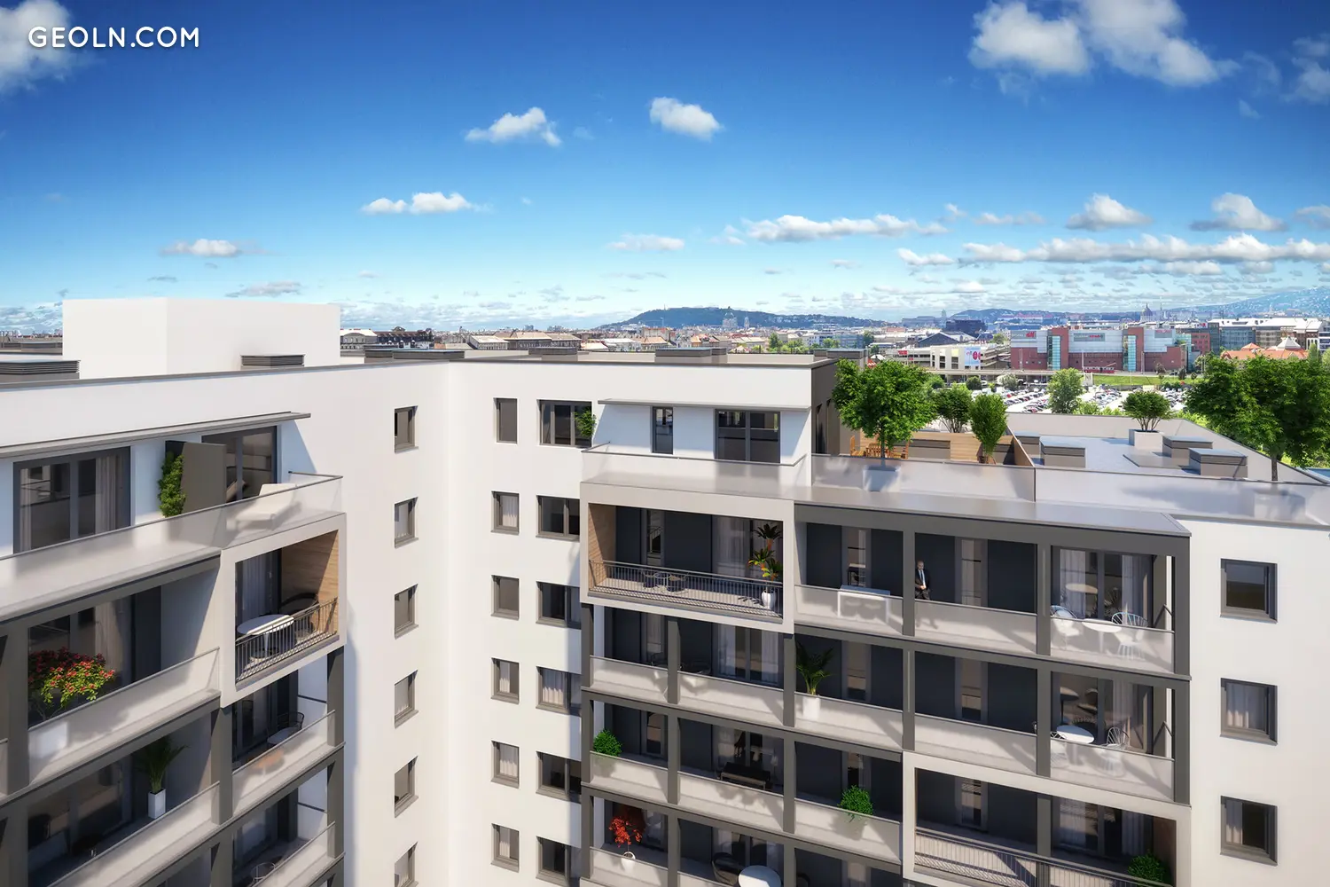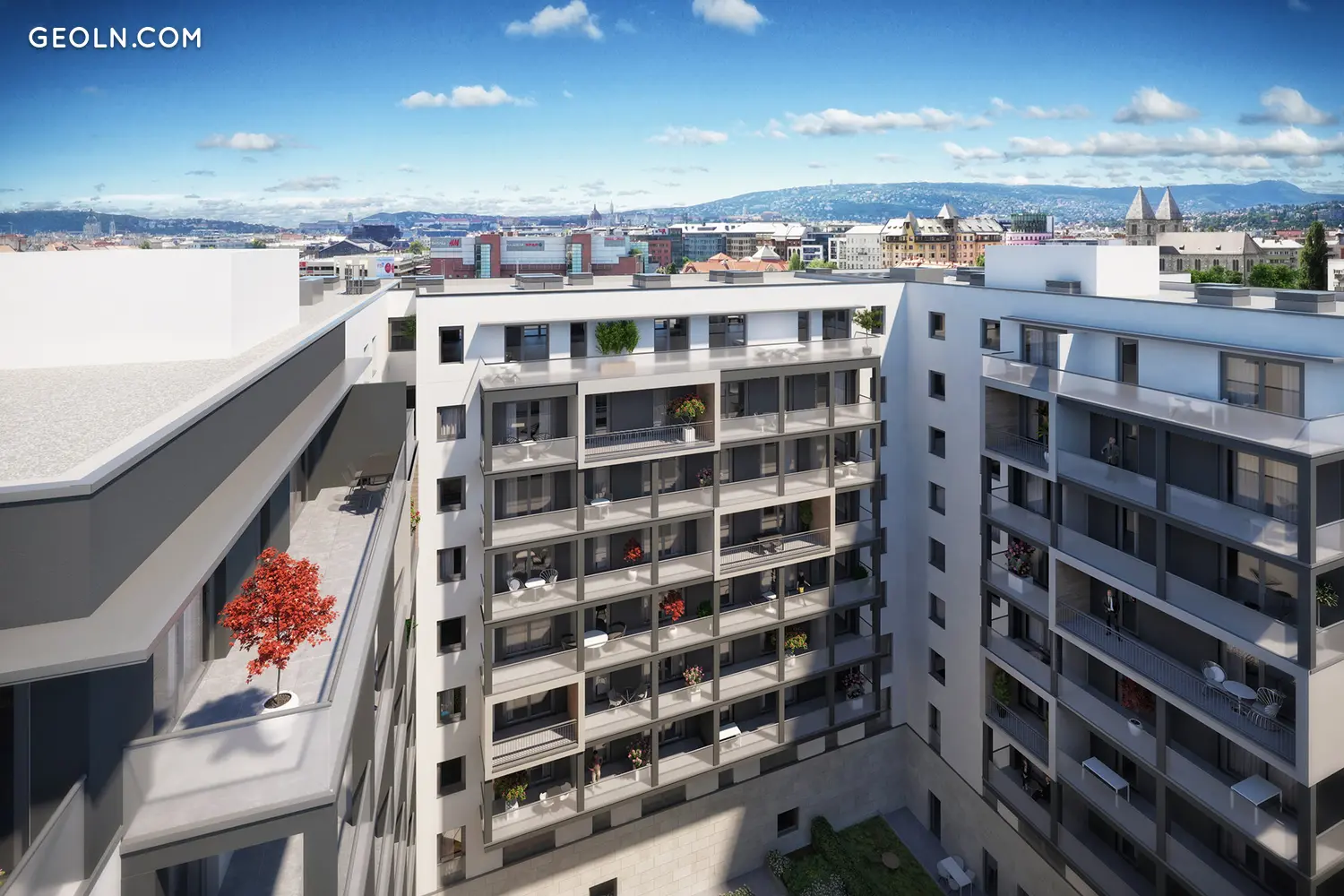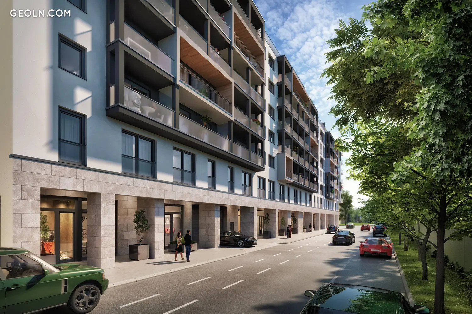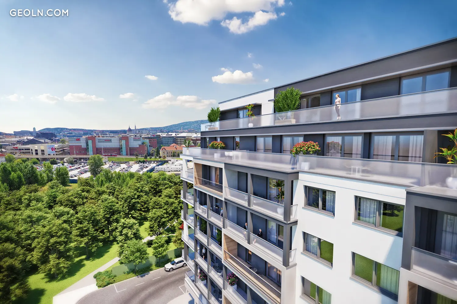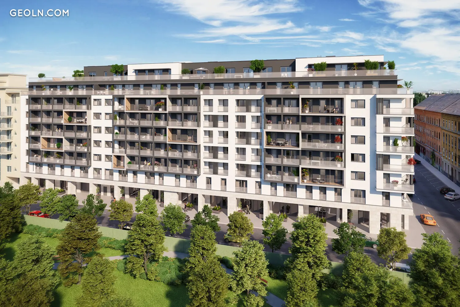El edificio se construirá en el lote de esquina ubicado en la intersección de las calles Bulcsú y Szabolcs. La fachada principal da a la calle Bulcsú; Por este lado se puede acceder a los dos bloques de paso ya la rampa de acceso al aparcamiento de la planta baja. De acuerdo con el plan urbanístico, en la fachada que da a la calle Bulcsú se construirá un soportal de 3,5 metros de ancho. La planta baja del edificio albergará áreas comerciales en ambos frentes a la calle y se construirán departamentos en áreas con acceso al jardín interior. Los otros niveles sobre rasante del edificio albergarán apartamentos.