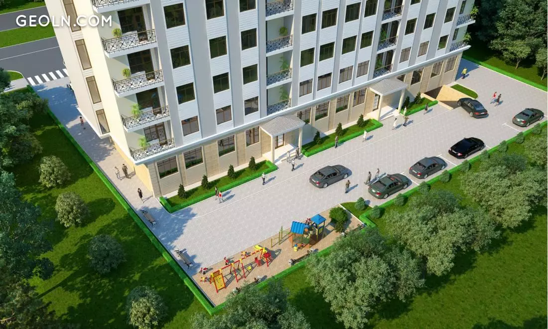 La planta subterránea está reservada para el aparcamiento, con capacidad para 22 coches. Una vez finalizados los trabajos de construcción, se plantarán arbustos en el patio, se colocarán céspedes y aparecerá un patio de recreo seguro.