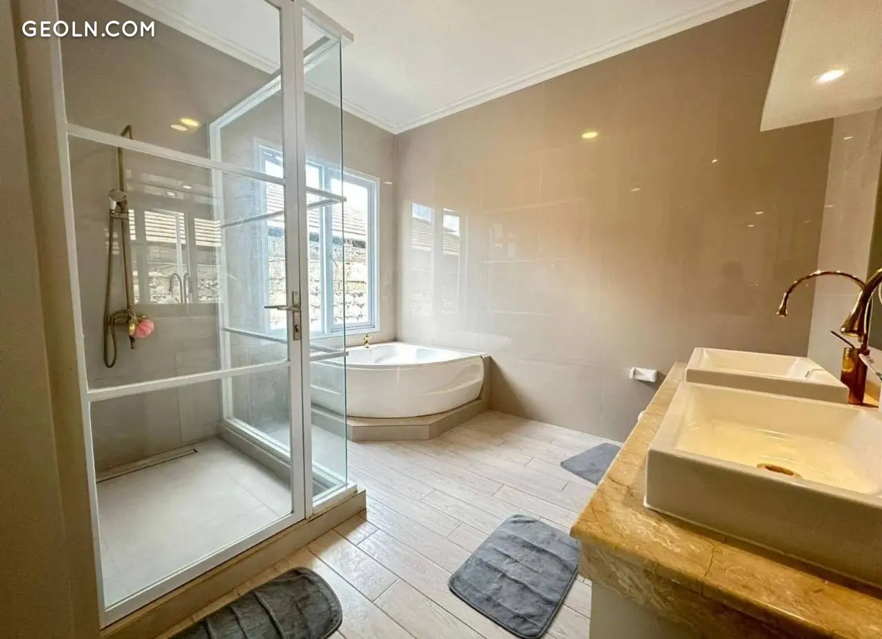 Esta villa en Pererenan con una superficie habitable de 500 m² y un terreno de 460 m² se ofrece en arriendo. Cuenta con una piscina grande, 5 dormitorios, incluyendo una habitación principal y una de personal, y una sala de estar totalmente cerrada. La propiedad también incluye un mirador, un jardín en el techo y estacionamiento para 2 coches y 4 bicicletas. #DBLeasehold #DBL600l700 #DBL800l900 #DBL5BR #DBL5BRPererenan #DBLPererenan