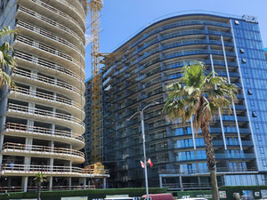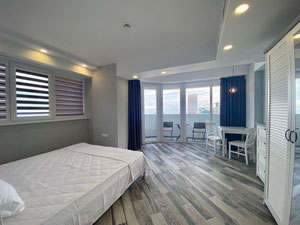 Este apartamento de 61 m² en el 5º piso cuenta con una cocina-sala de estar espaciosa y luminosa con dos ventanas, un gran dormitorio y baño, un pasillo cómodo y un balcón en esquina. El apartamento está en condición de "estructura en bruto" y cuenta con vistas panorámicas únicas al mar y a las montañas.