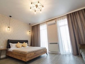 El complejo se encuentra en una zona ecológica de Makhindzhauri: rodeado de pinos centenarios y huertos, aire puro, silencio y naturaleza. Cerca hay mar, tiendas, escuela, parque con áreas de juegos infantiles y deportivas. A solo 12 minutos en coche del Jardín Botánico y del centro de Batumi.