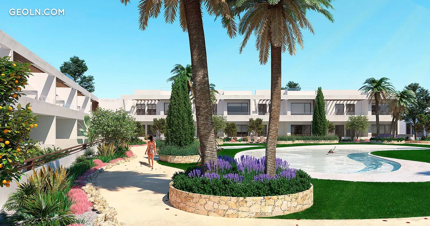 Villa Amalia Gardens es un conjunto residencial situado a tan solo 100 metros del mar, en Torrevieja. Se compone de viviendas tipo bungalow de 2 y 3 dormitorios, que te permitirán elegir entre la planta baja con jardín o la planta alta con solárium. Las viviendas se entregan con cocina amueblada, aerotermo, suelo de porcelanato, ventanas de PVC con persianas motorizadas, sistema de alarma, sistema de aire acondicionado frío y calor, garaje en sótanoo baños equipados con mampara, mueble y suelo radiante, entre otras cosas. . Pero, sin duda, lo más llamativo de este residencial son sus acogedoras zonas comunes con zonas de relax y paseo, zonas verdes y piscina. Todo esto a tan solo 100 metros del mar.