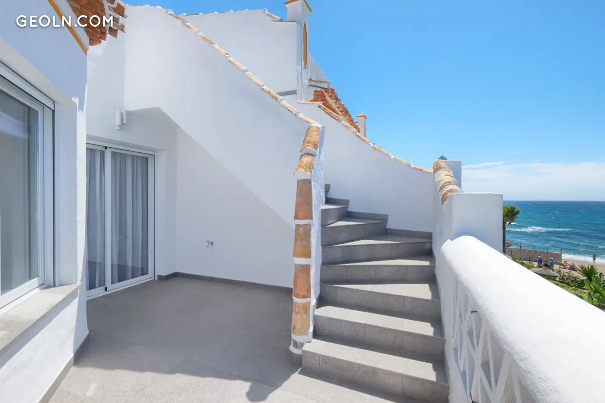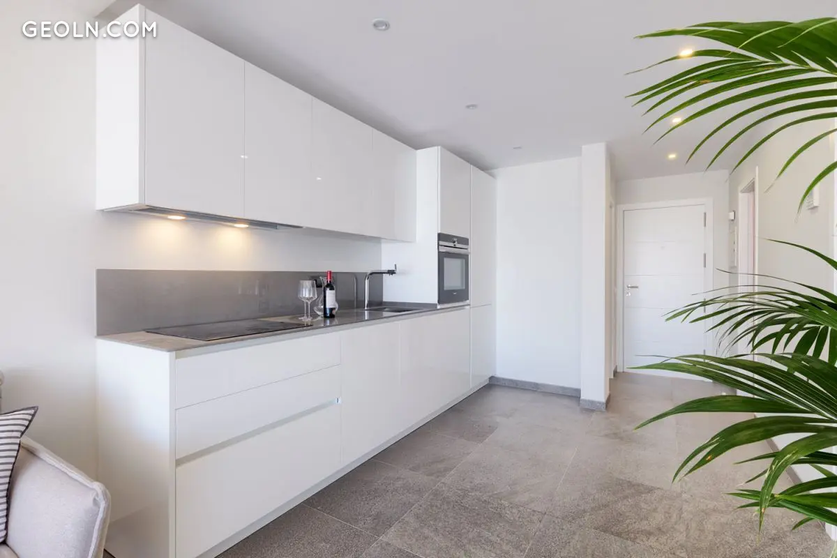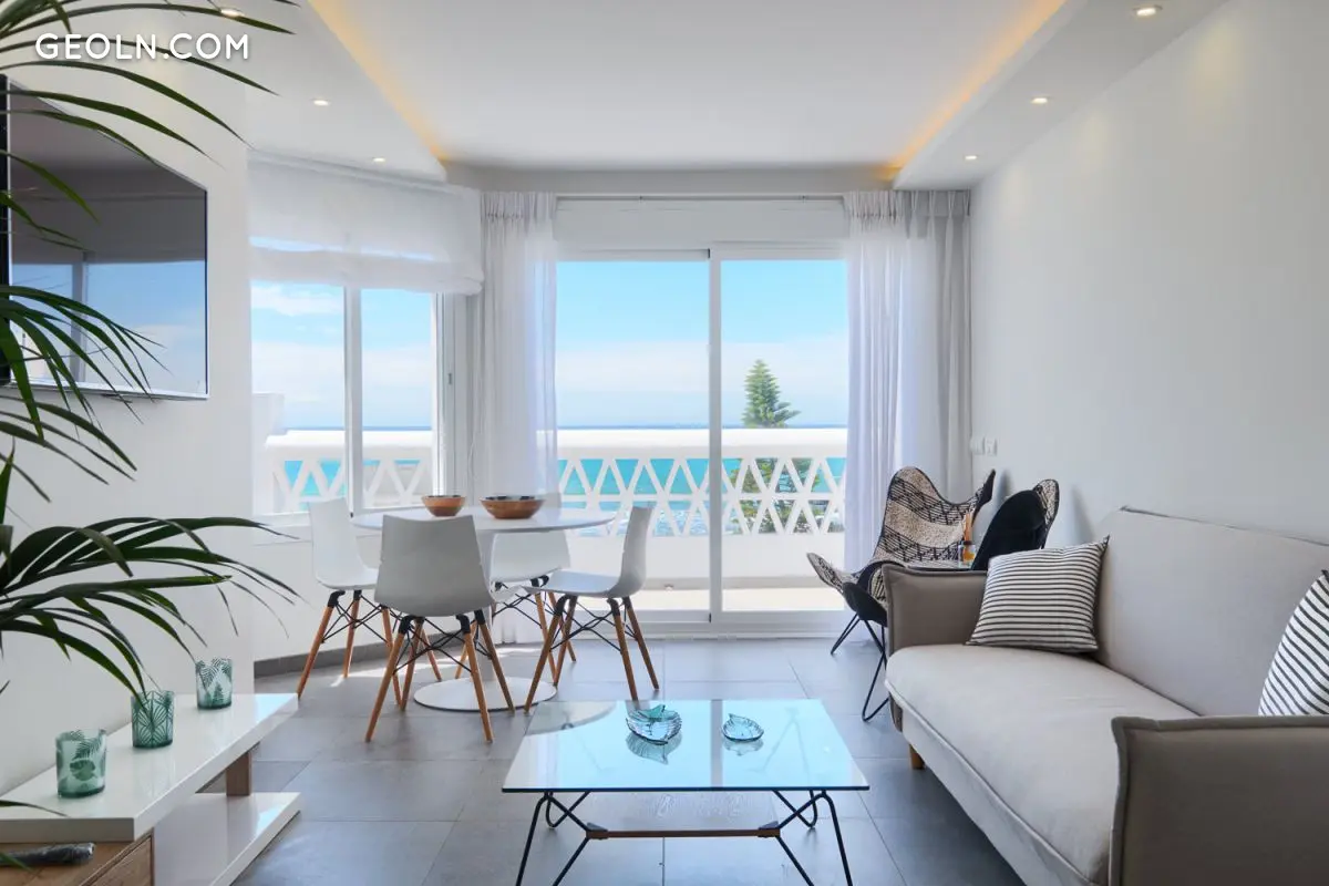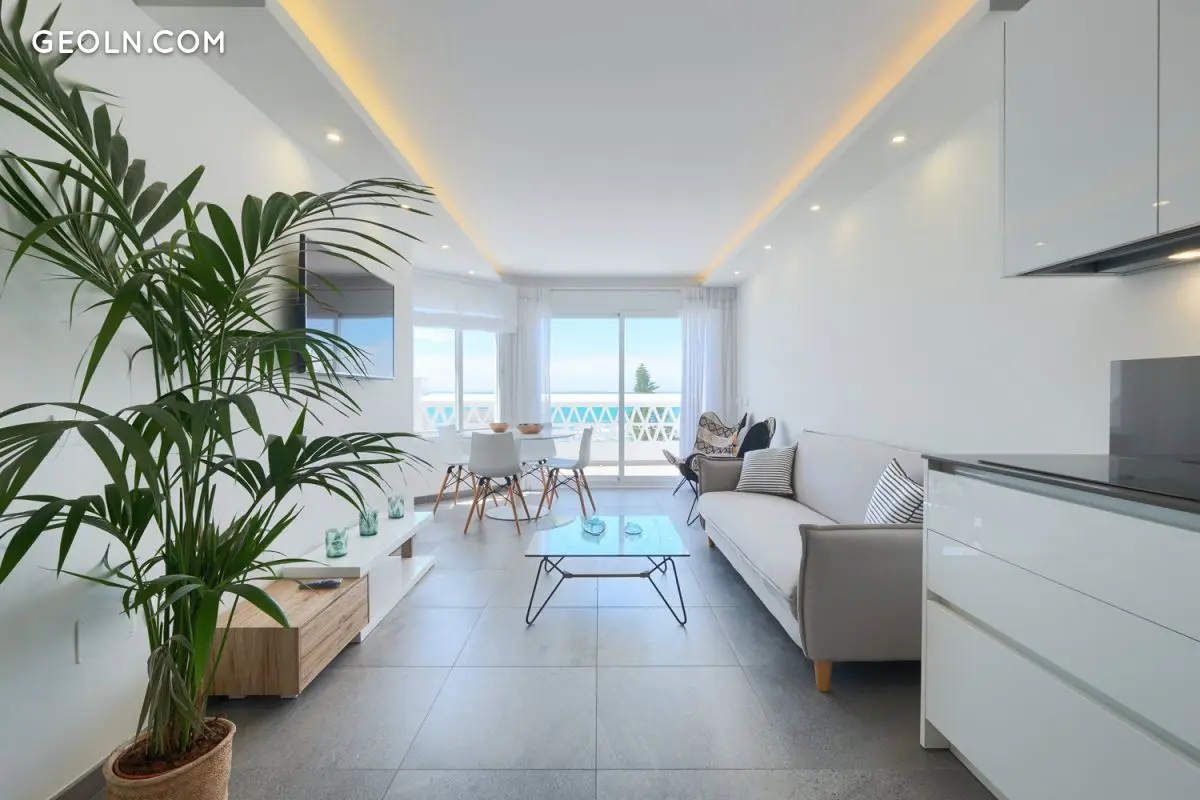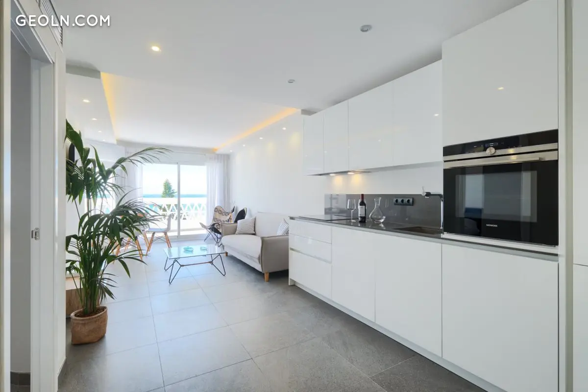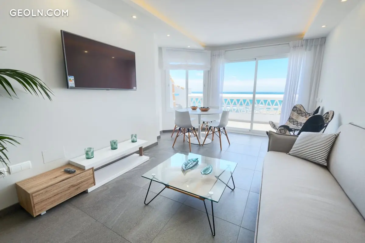 Ático moderno con estilo en primera línea de mar. Cerca de la playa y de todos los servicios. Orientación suroeste.Salón comedor con cocina americana totalmente equipada (Arrital), electrodomésticos Neff y Siemens. Acceso directo a la terraza con escaleras a la azotea/solarium.