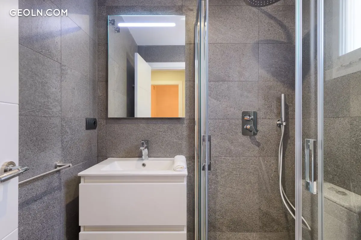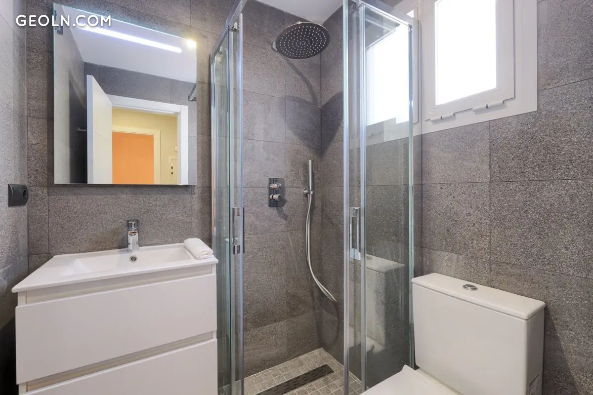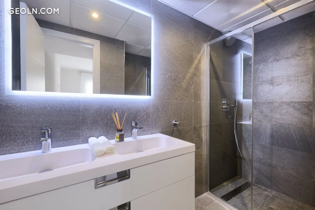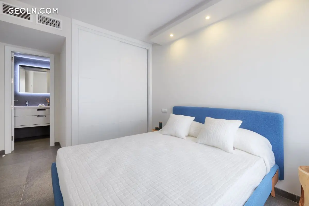 Azulejos italianos, Durravit en baños y duchas de alta gama, persianas eléctricas, falsos techos con iluminación indirecta, paredes revocadas, aire acondicionado, suelo radiante en baños.