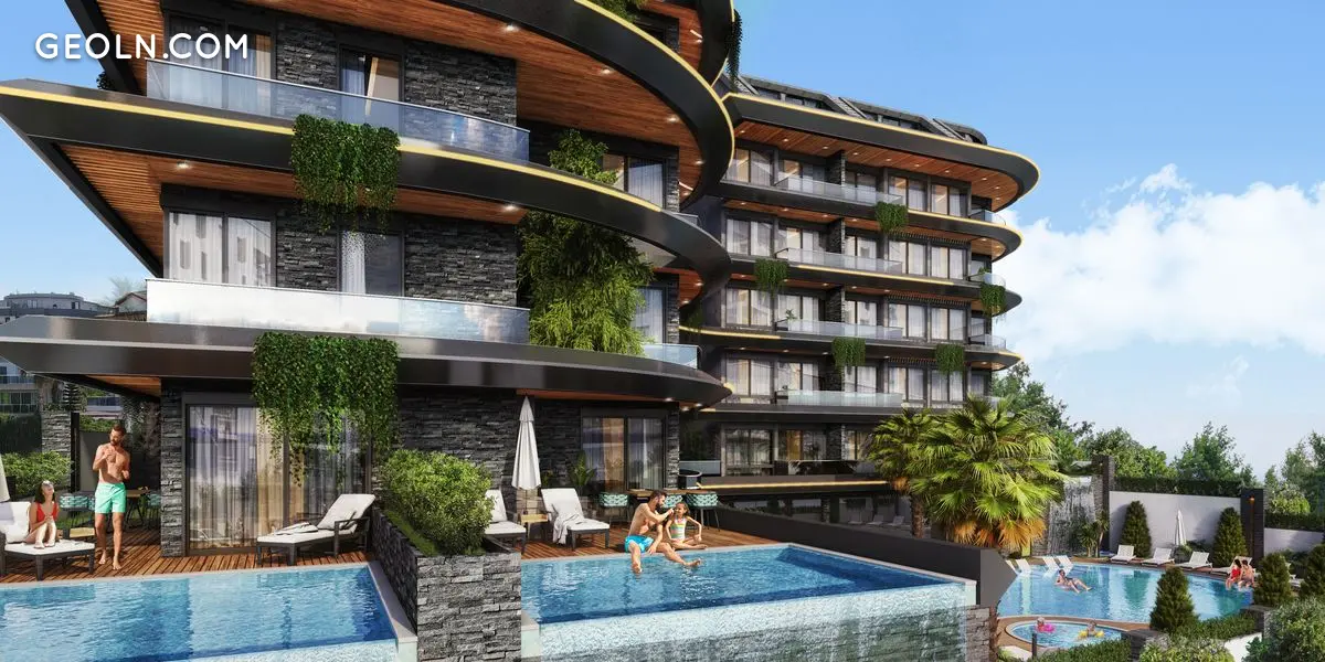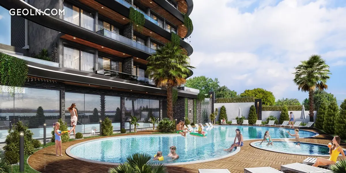Un conjunto residencial de élite con características indistinguibles de un Hotel 5 estrellas.Nuevo proyecto de clase premium ubicado a 230 metros del mar, en la zona de Kestel.