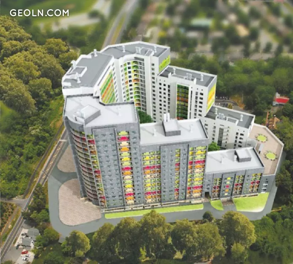 El nuevo edificio es un edificio de ocho secciones con una altura de tres a diecinueve pisos. Las secciones están dispuestas de tal manera que se forma un patio cerrado con un pasaje.