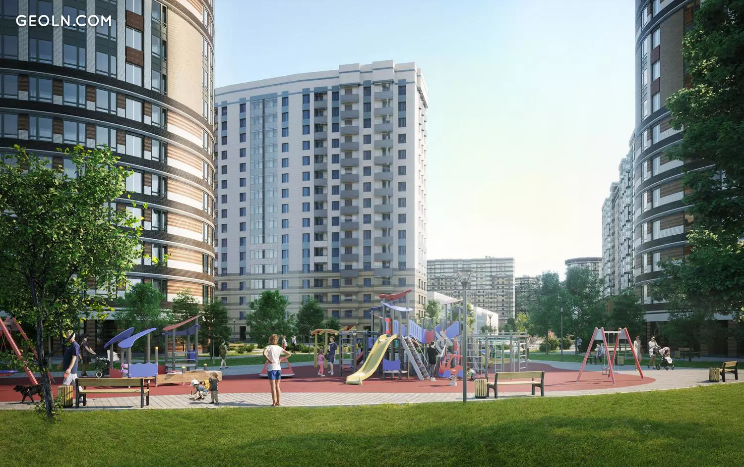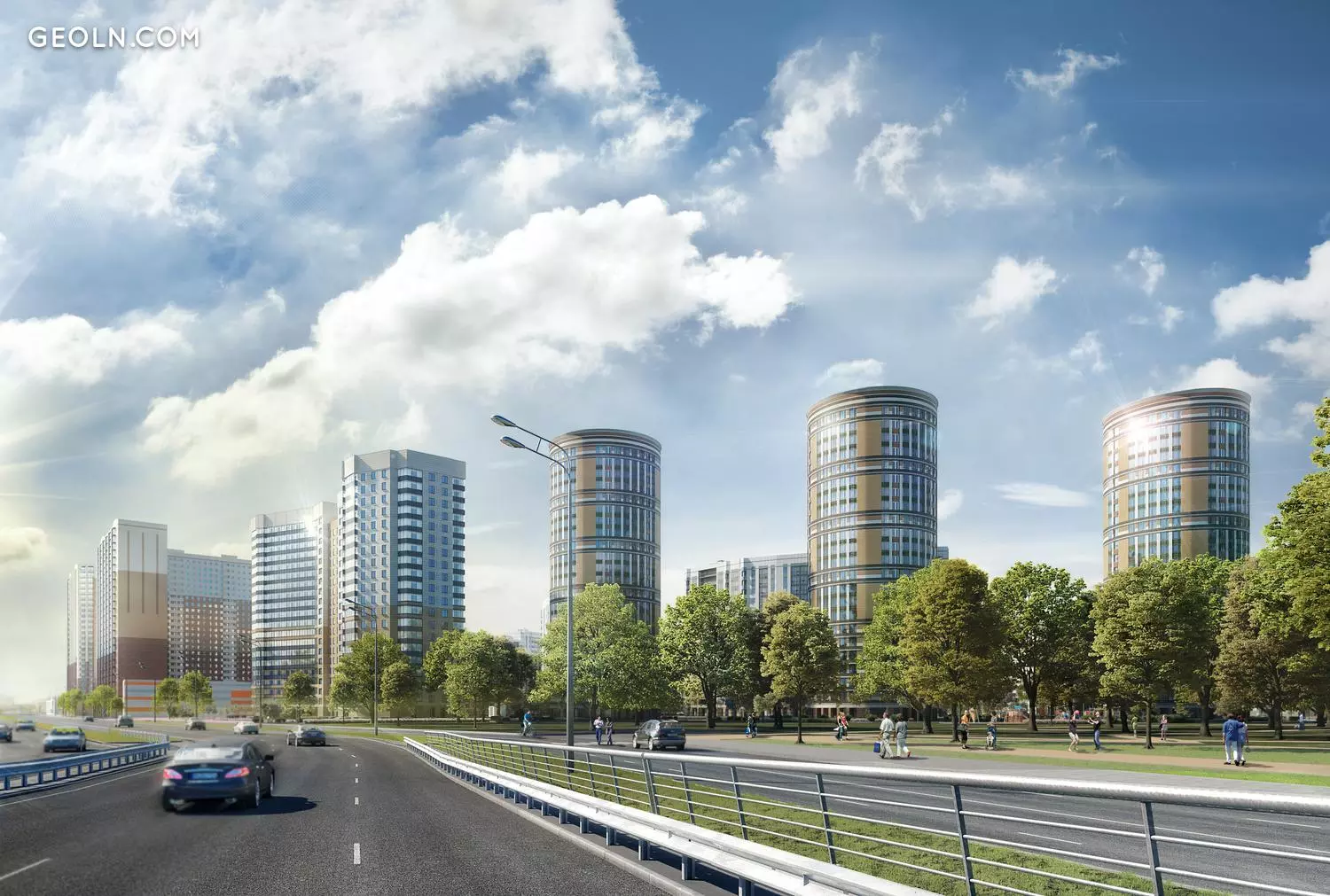 El nuevo edificio está representado por seis edificios residenciales con una altura de 16 a 25 pisos, se proporcionan espacios de estacionamiento en tierra y subterráneos para los propietarios de automóviles, así como estacionamiento al aire libre en la calle, en total para más de 4,000 automóviles.