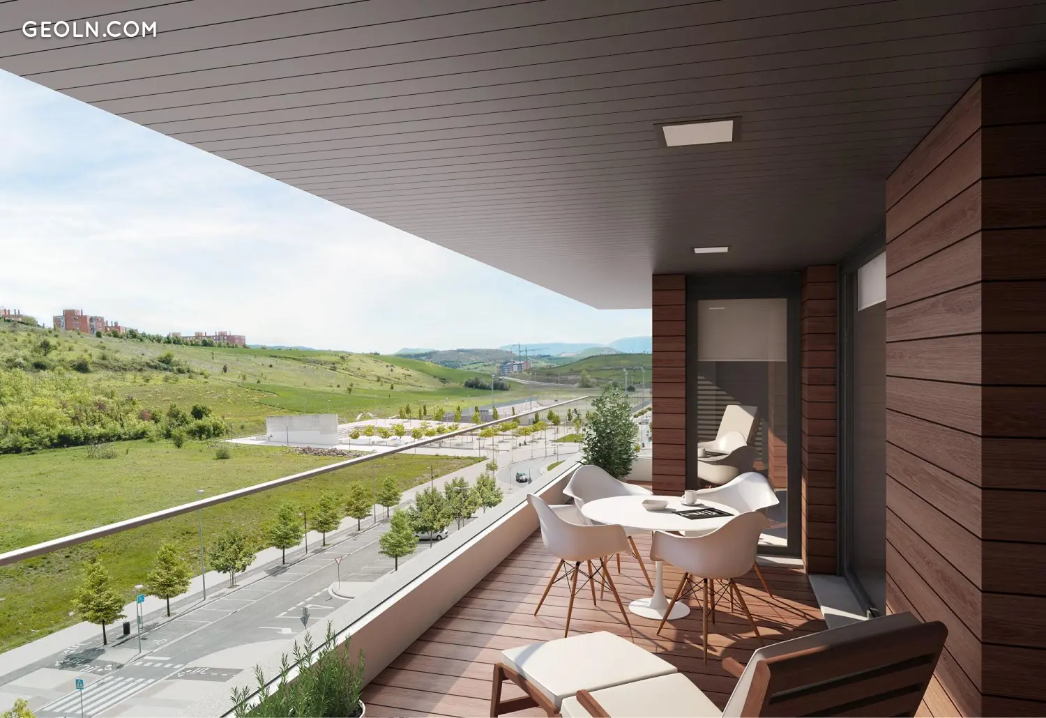 El revestimiento exterior del edificio estará compuesto por una fachada ventilada cerámica de gran formato con acabado imitación madera y/o blanco. Además, las viviendas contarán con amplias terrazas con barandilla de vidrio. La carpintería exterior será de aluminio con rotura de puente térmico y doble acristalamiento con gas argón.