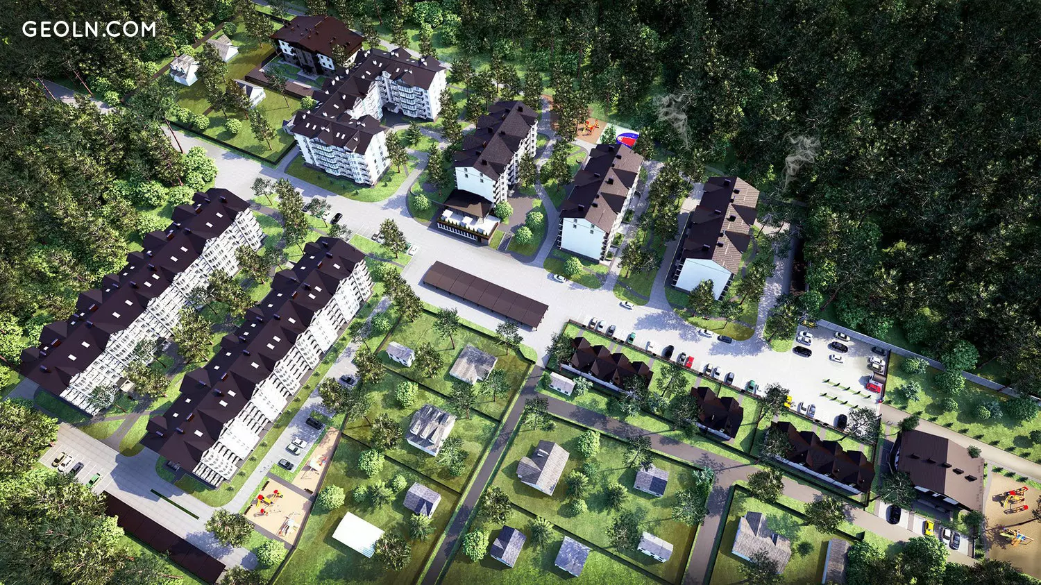 Zazimye es un área ecológicamente limpia, es bosques y lagos, es aire cristalino y es paz y tranquilidad. Es por eso que se decidió erigir el complejo residencial de residencia DESNA aquí.