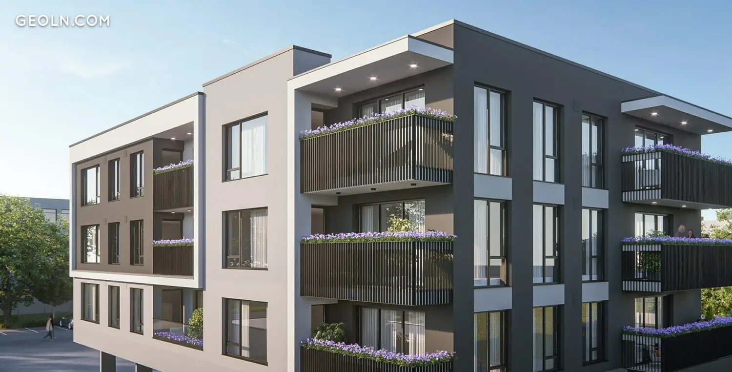 Every balcony will have planter boxes with blue liverflowers and strawberries, that will make the balcony look like a beautiful and fresh forest understory in the spring and a fruitful garden bed filled with sweet treats in the summer.