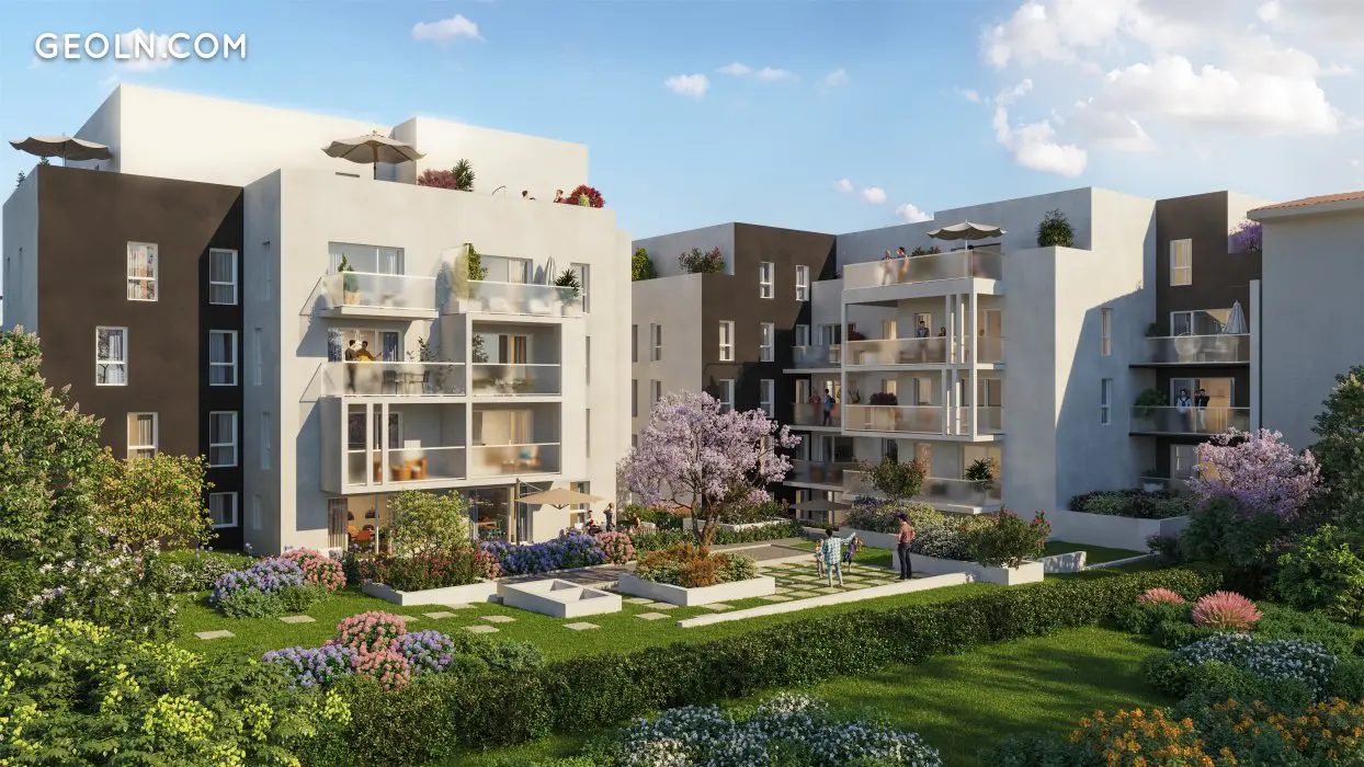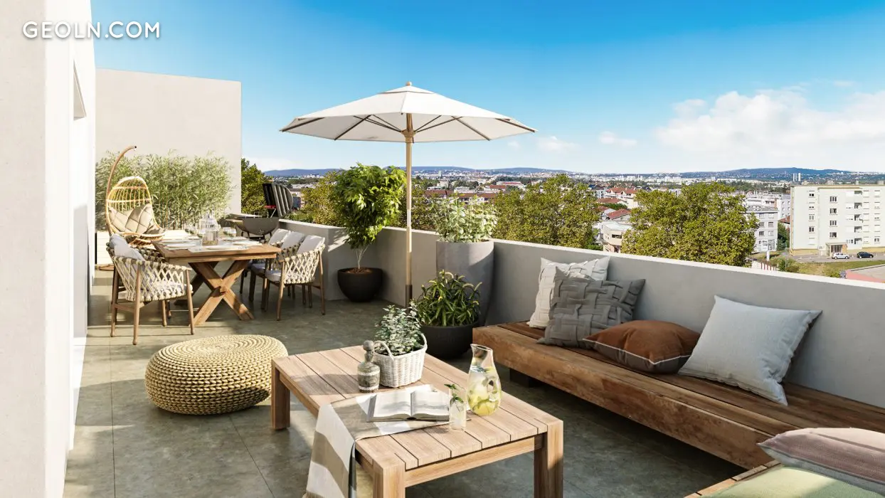 Décines-Charpieu is a town in the metropolis of Lyon located just 10 km from downtown Lyon. Known for its urban ideal and its prime geographical location, this city has been able to combine economic development and attractive cultural heritage. Its environment endowed with green spaces, public gardens and Grand Large lakes, the Rize river and the Jonage canal are all islets of greenery that magnify the city. Villa Bellevue is a residence enjoying a remarkable location in the heart of the city where nature and man live in perfect harmony. Each apartment, ranging from studios to 5 rooms, has an exterior: balcony, loggia, terrace or private garden. From the 2nd floor, superb panoramas are offered for the residents to view. A playground and planters have also been designed to favor meetings and exchanges between neighbors and friends.