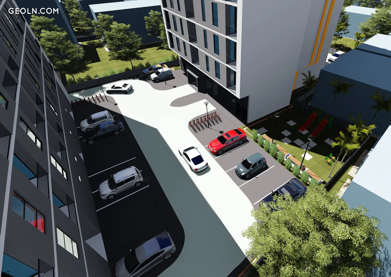 Modern high-speed elevators are installed in the complex, and the fire safety system will provide additional security. The on-site amenities include underground parking, a playground, a mini-football field, and recreation areas.
