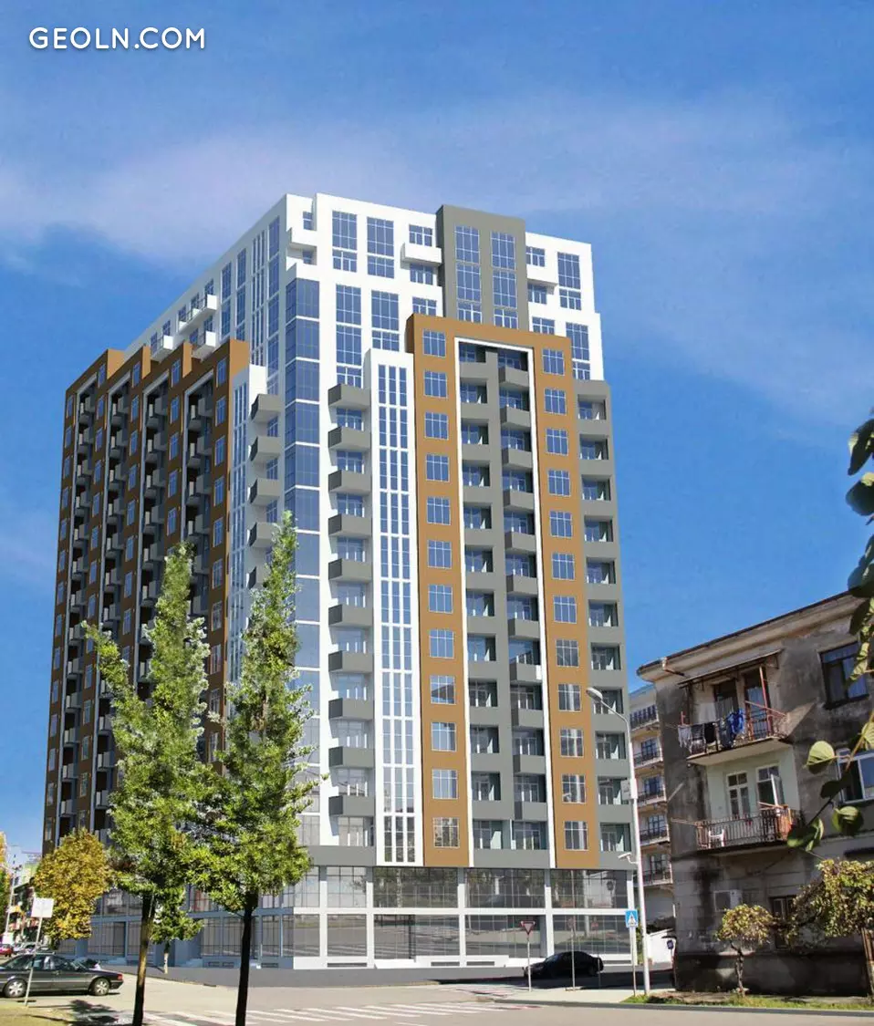The house is located in a cozy residential quarter on Pushkin street 162, the front side of the house looks at the mountains and the back at the city. Nearby are shopping facilities. The residential building has 16 floors with an attic.