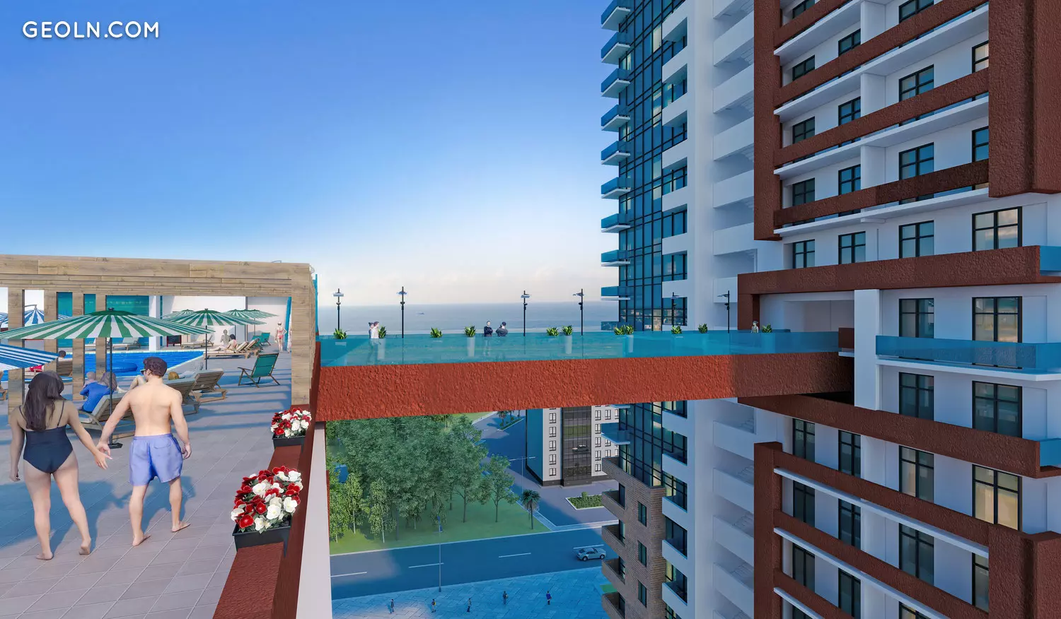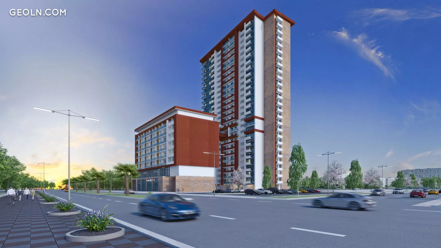 LCD Alpha Heights in Batumi will consist of a multi-apartment residential building with a height of 27 floors and an 11-storey hotel. The buildings are interconnected using a bridge located at the 10th floor level with glass fences. The decoration of the facades uses a combination of white and red colors, as well as a large amount of glass, which gives the buildings an extremely modern and dynamic look.