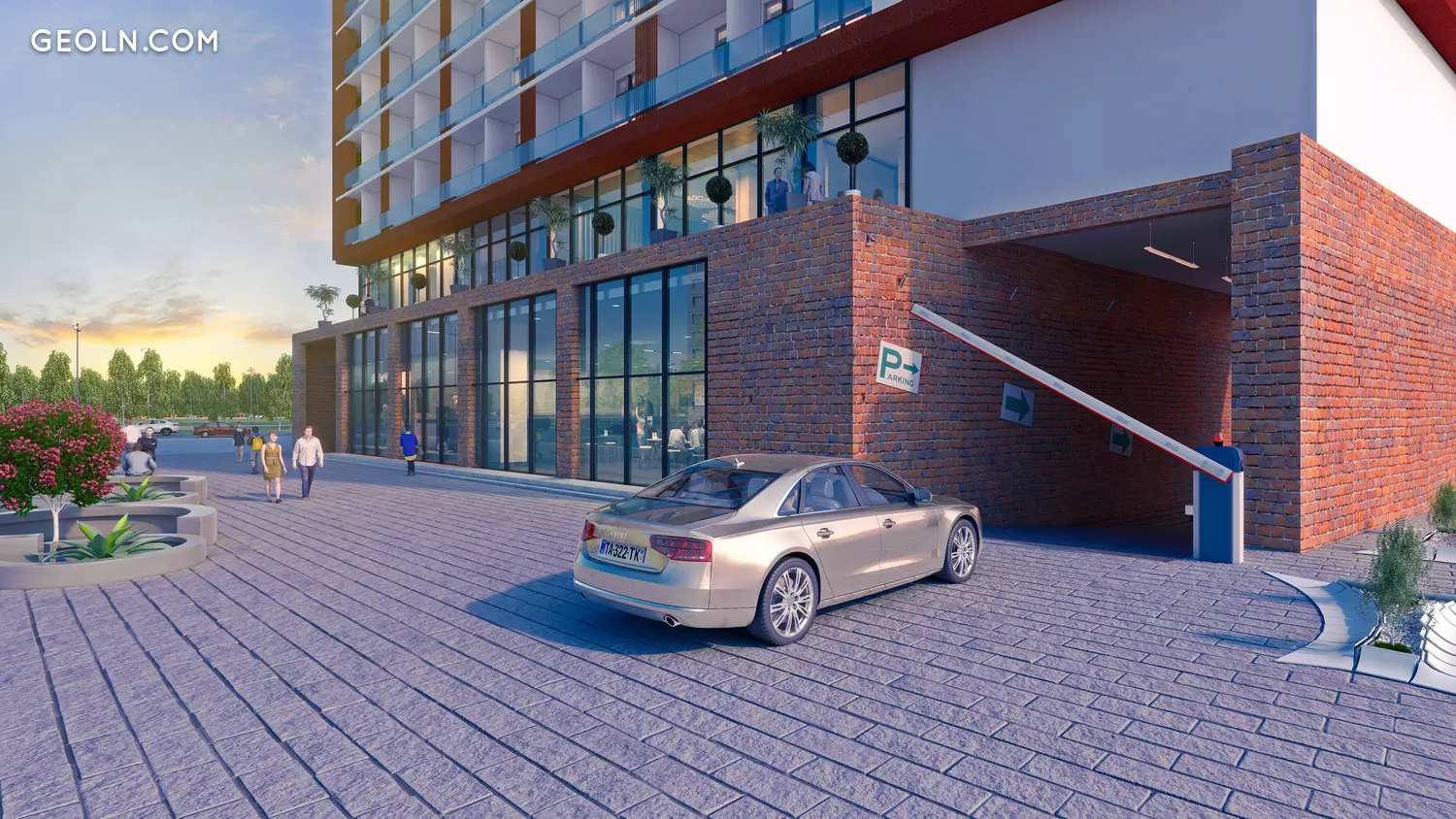 Outdoor swimming pool on the hotel’s operating roof; Park area; Sports ground; Zone for children’s games. An underground parking and on-site parking are provided for placing cars in the house. Bike parking will appear here.