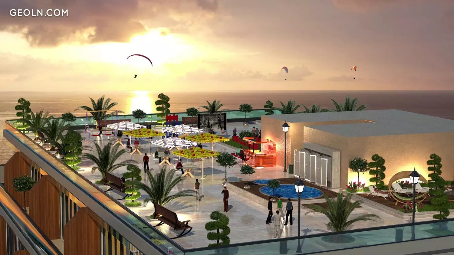 Priorities-administration, room service, AUTO, MOTO, BICYCLE RENTAL SERVICES, tourist bus, underground parking, yard landscaping, and children's rides, facade insulation, aluminum panels, high-quality lifts + a fire fighting lift, fire safety, commercial area, sauna & fitness, conference hall, MODERN-STYLE furnished VERANDA, ”ELT" BRANDED BEACH, pool, bridge, environmentally friendly building materials!