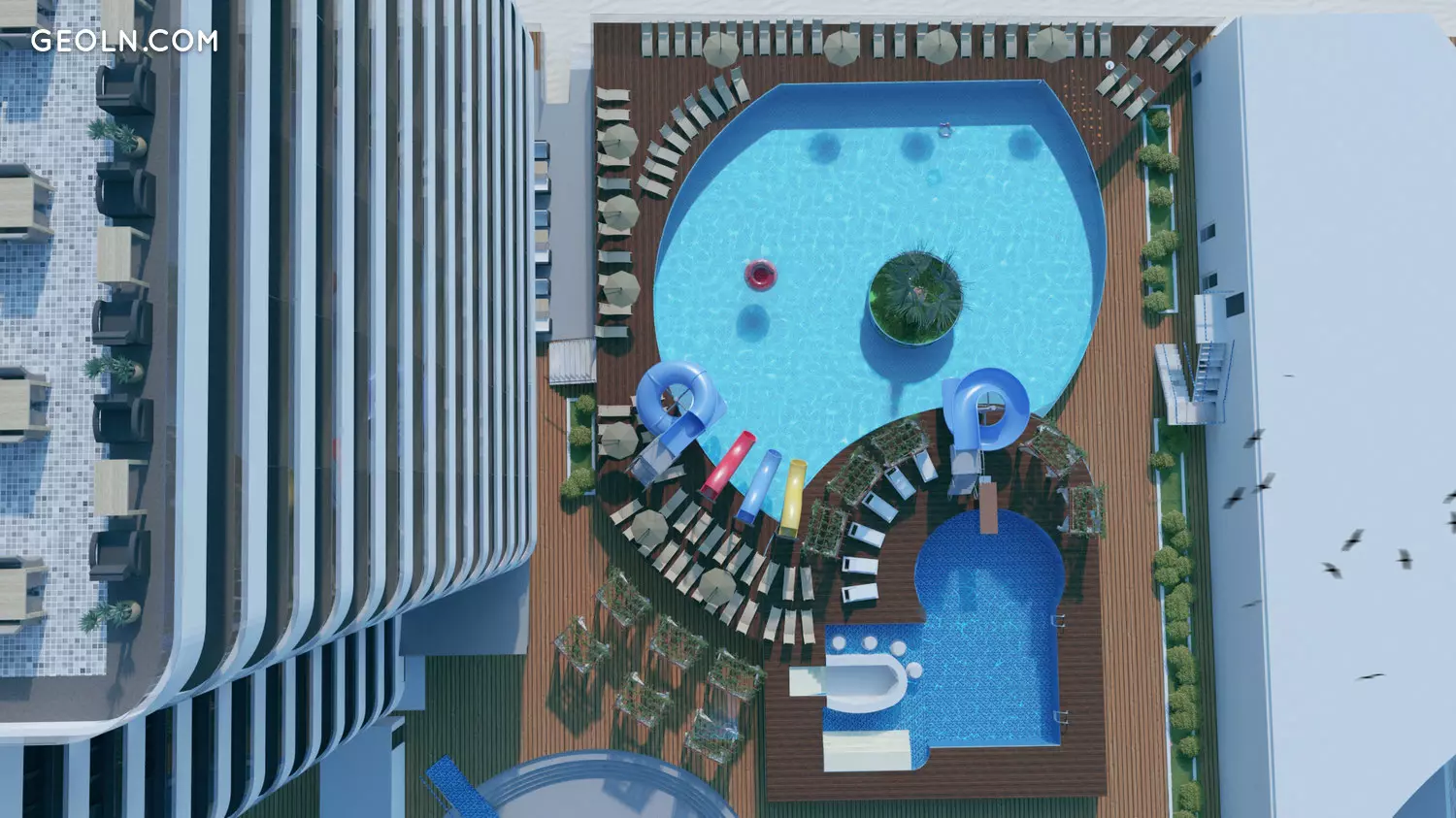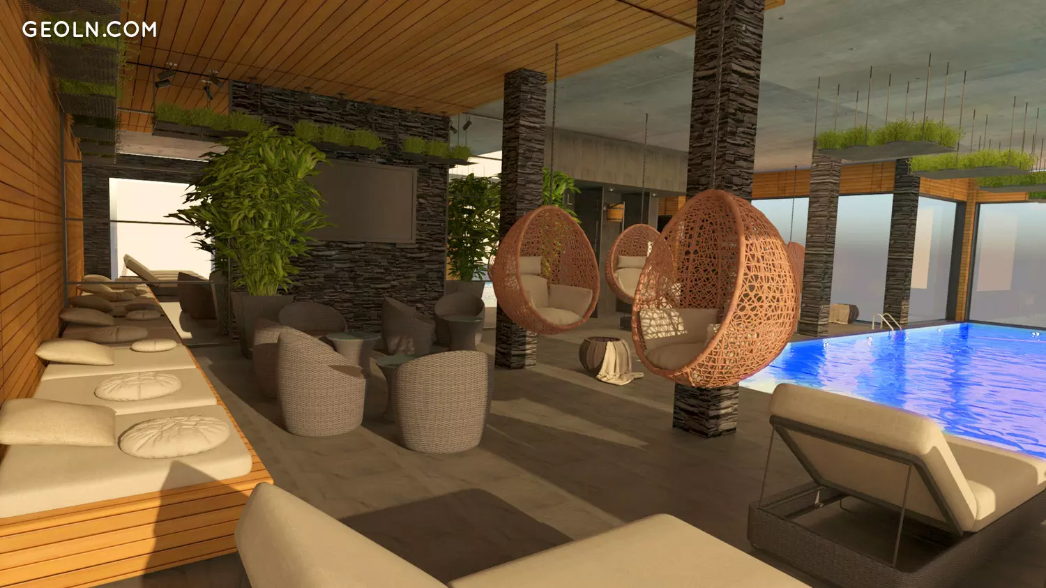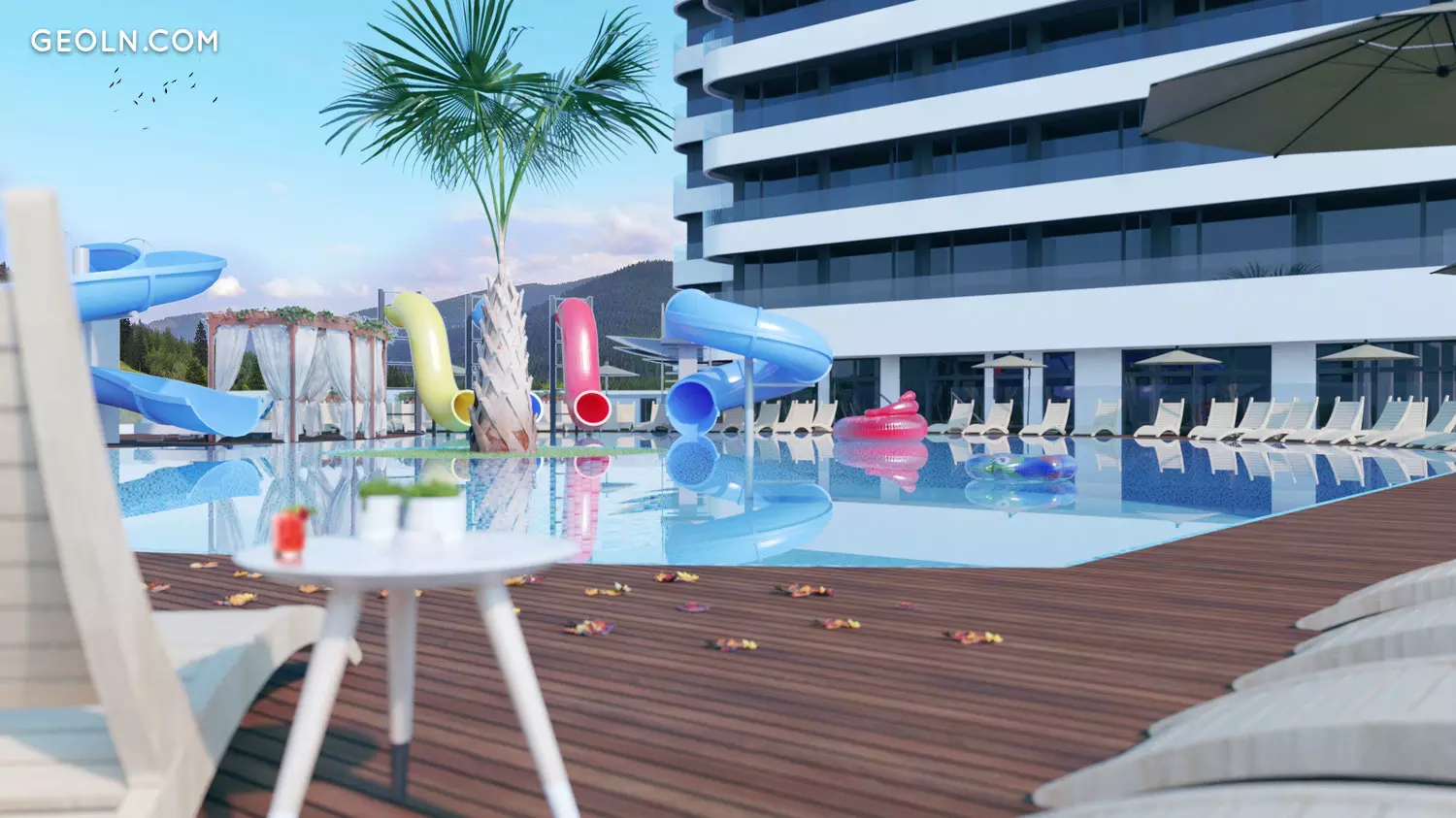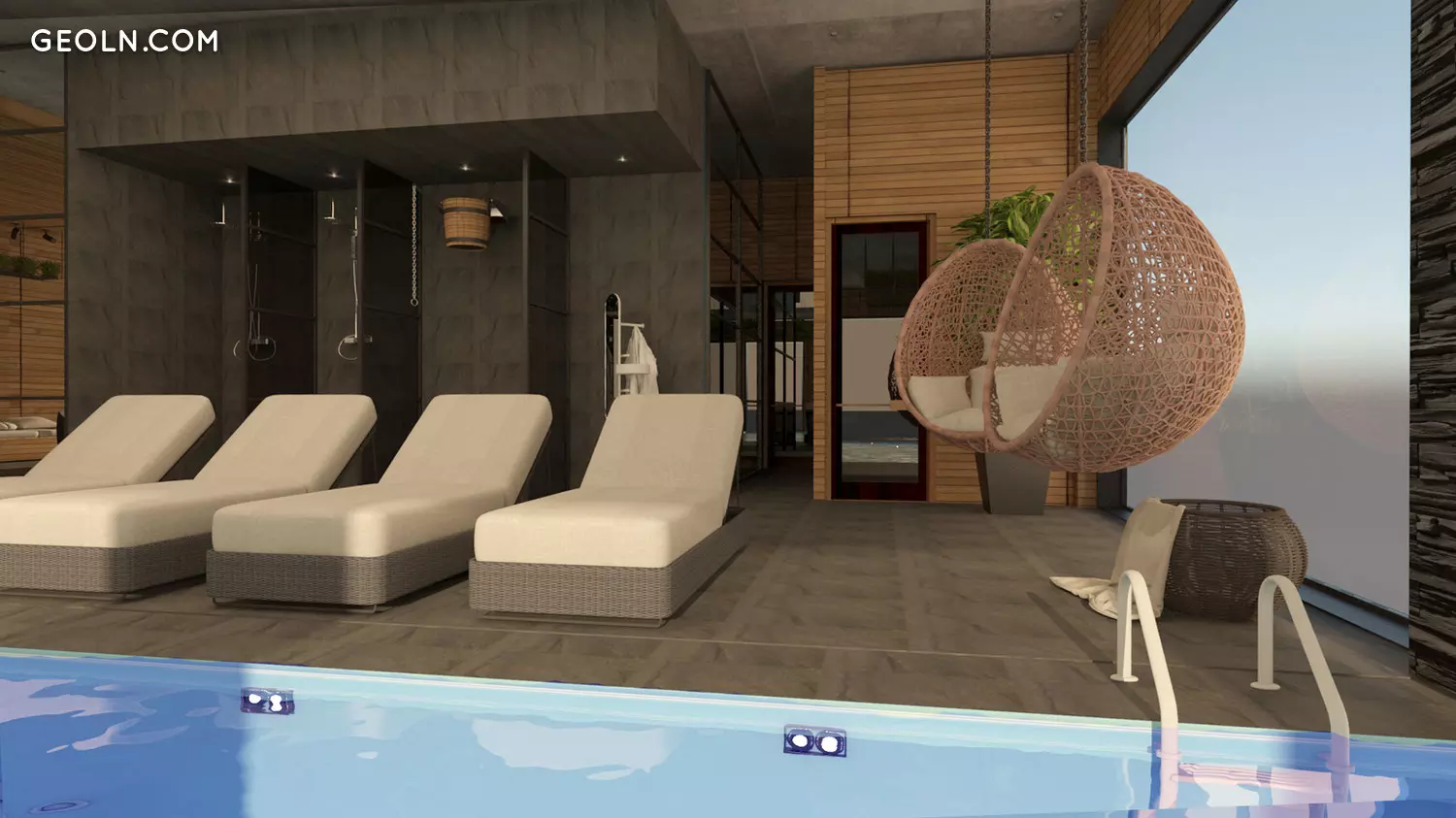 A swimming pool is arranged;