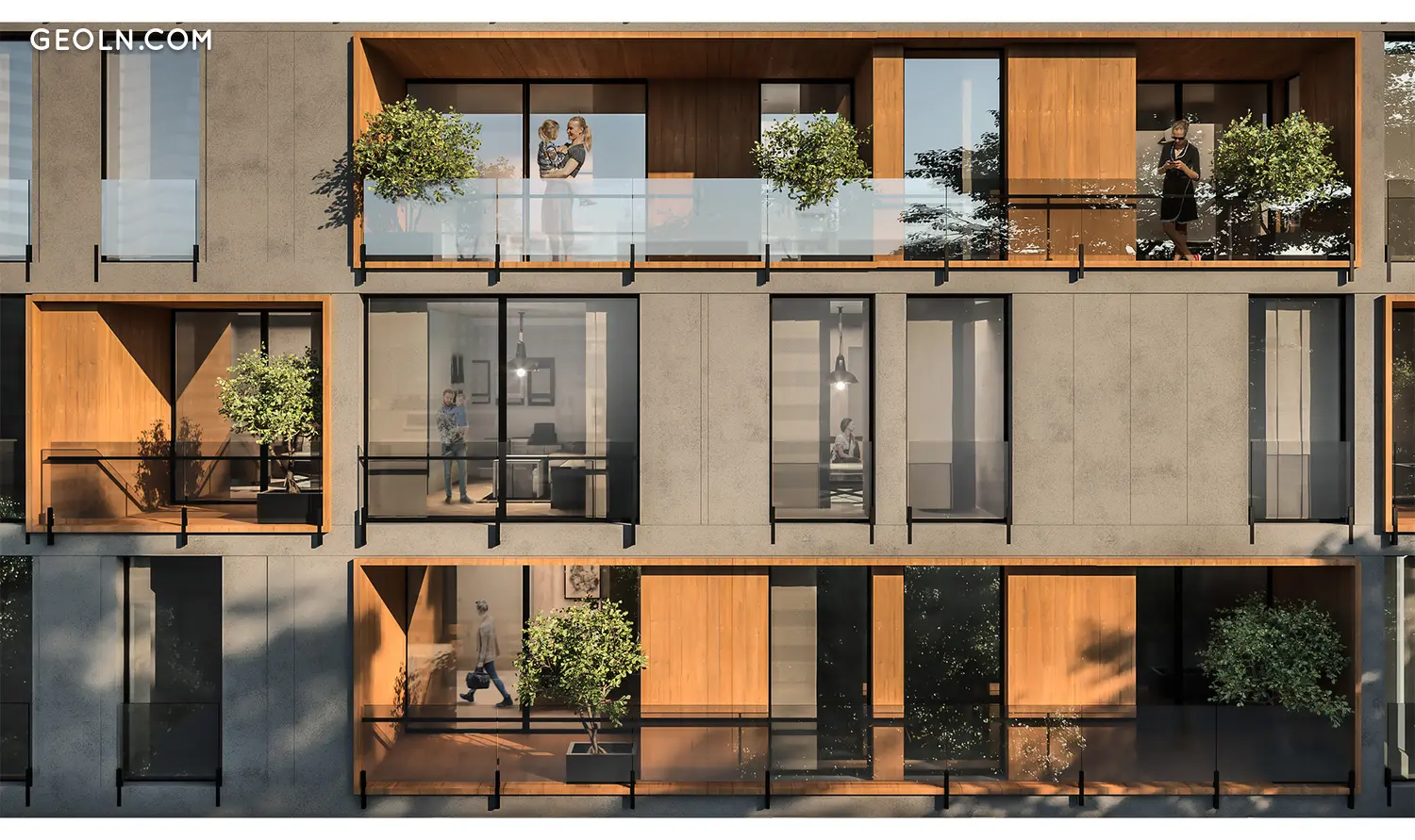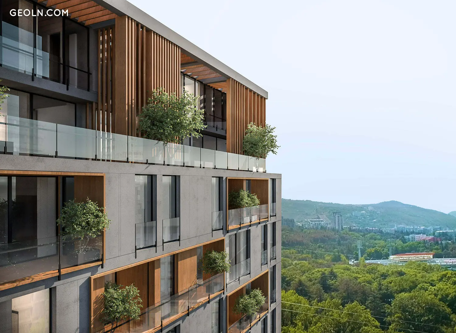 Modern architecture, remarkable appearance and interior design, one entrance, 11 floors and only 32 apartments. Facade from Spanish company Neolith; Sliding doors and windows from Belgian company