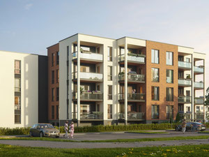 Fourteen-storey residential building with 2 entrances. 164 apartments, the minimum area is 40 m2, the maximum area is unlimited. On the first floor there is a commercial area of 800 m2. Underground parking is available on the ground floor.