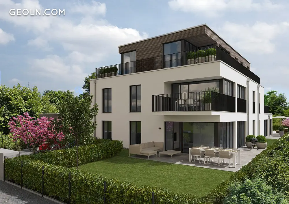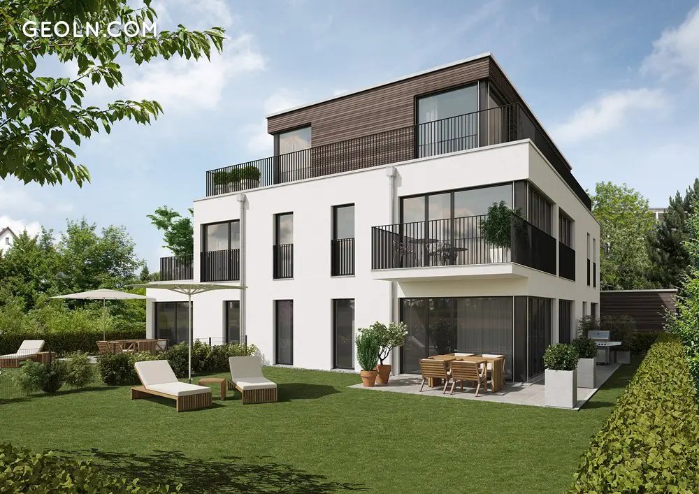Project: Multi-family house ensemble with up to 8 residential units between 82 and 167 m² in size, garden maisonette, city apartments and penthouse with roof terrace, spacious terraces and balconies