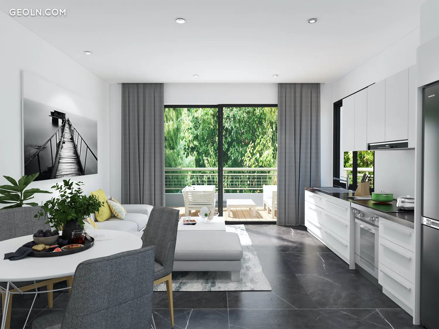 Well designed and laid out, the apartment comprises open plan living and kitchen areas, two bright bedrooms and a superbly contemporary bathroom. These gorgeous interiors are not just functional but also aesthetically pleasing.