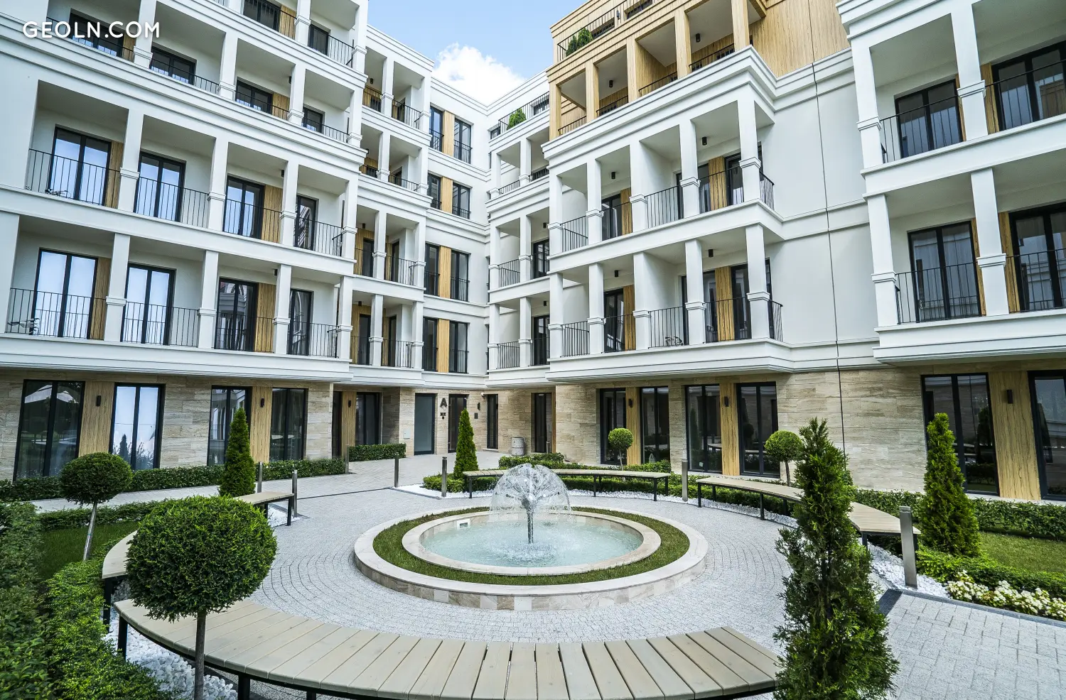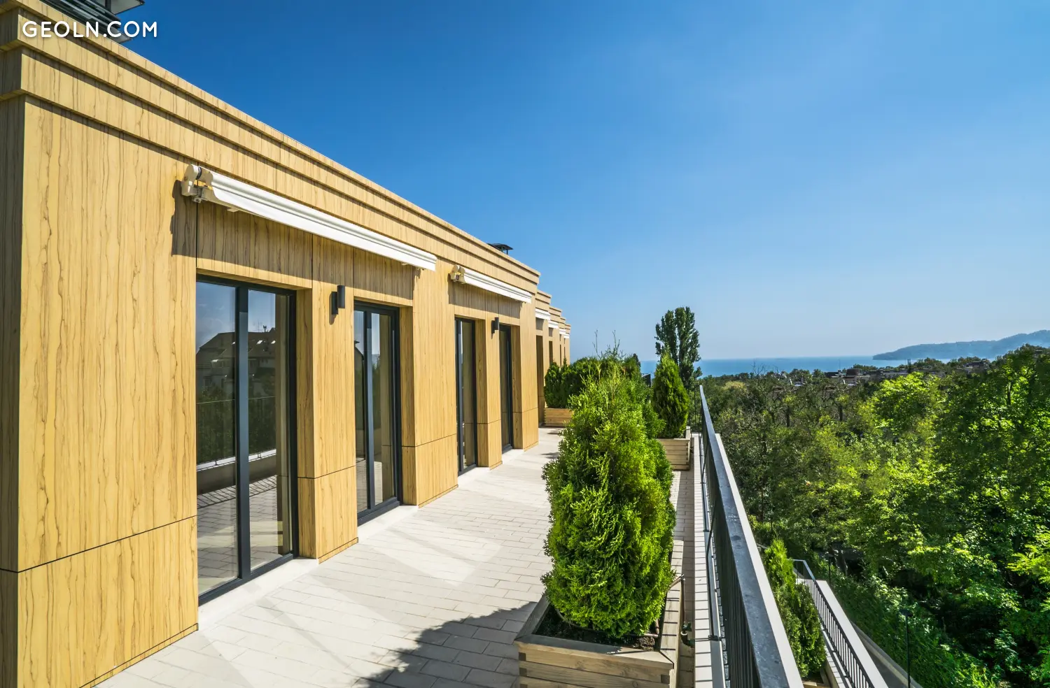 Arazinin meyve ağaçları, teraslarda ve bina cephesinde bulunan bitkiler ve site sınırı boyunca uzanan yeşil çitlerle zengin peyzajı, herkesin doğa ile birliği hissedebileceği rahat bir atmosfer yaratıyor.