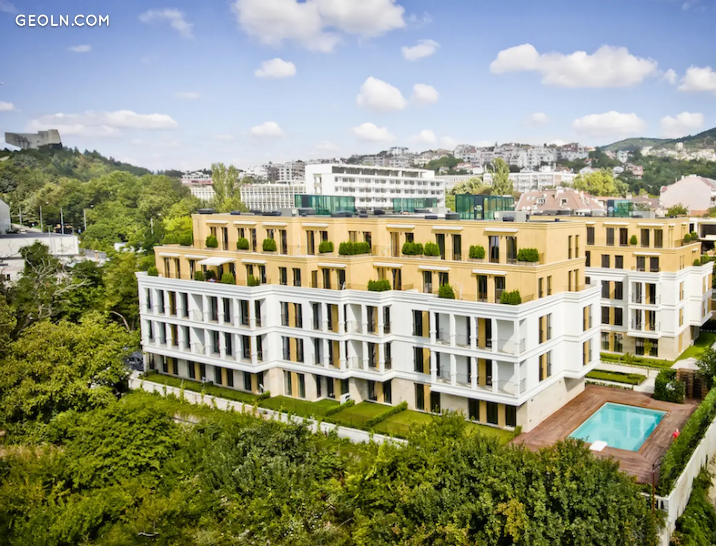 Kompleksi tasarlarken, ana vurgu, apartman sakinlerinin rahatlığına ve yaşam kalitesine verildi. Cephelerin kalitesine özellikle dikkat edilir. Ahşap unsurları ve doğal peyzajı ile doğal taş, sıcaklık ve konfor hissi verir. Binanın güzel cephesi, iyi donanımlı ve yeşil bir avluyu gizler. Sakinleri için konforlu banklar, çeşme, oyun alanı, barbekü alanı ve şezlonglu havuz sağlanmaktadır.