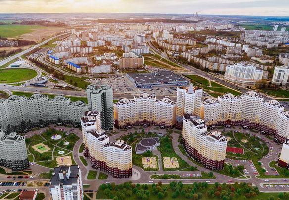 שטחי בניינים חדשים "טאפאס" במינסק מעוצבים, ישנם חניונים לאורחים או לקרקע, גני שעשועים ואזורי בילוי. עיצוב נוף משמש במתקני מעמד העילית.
