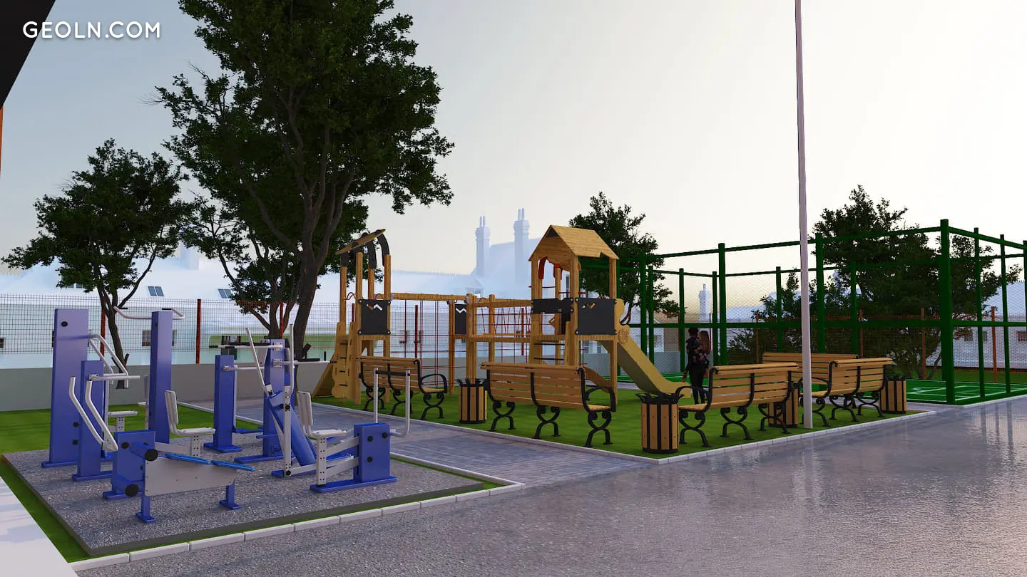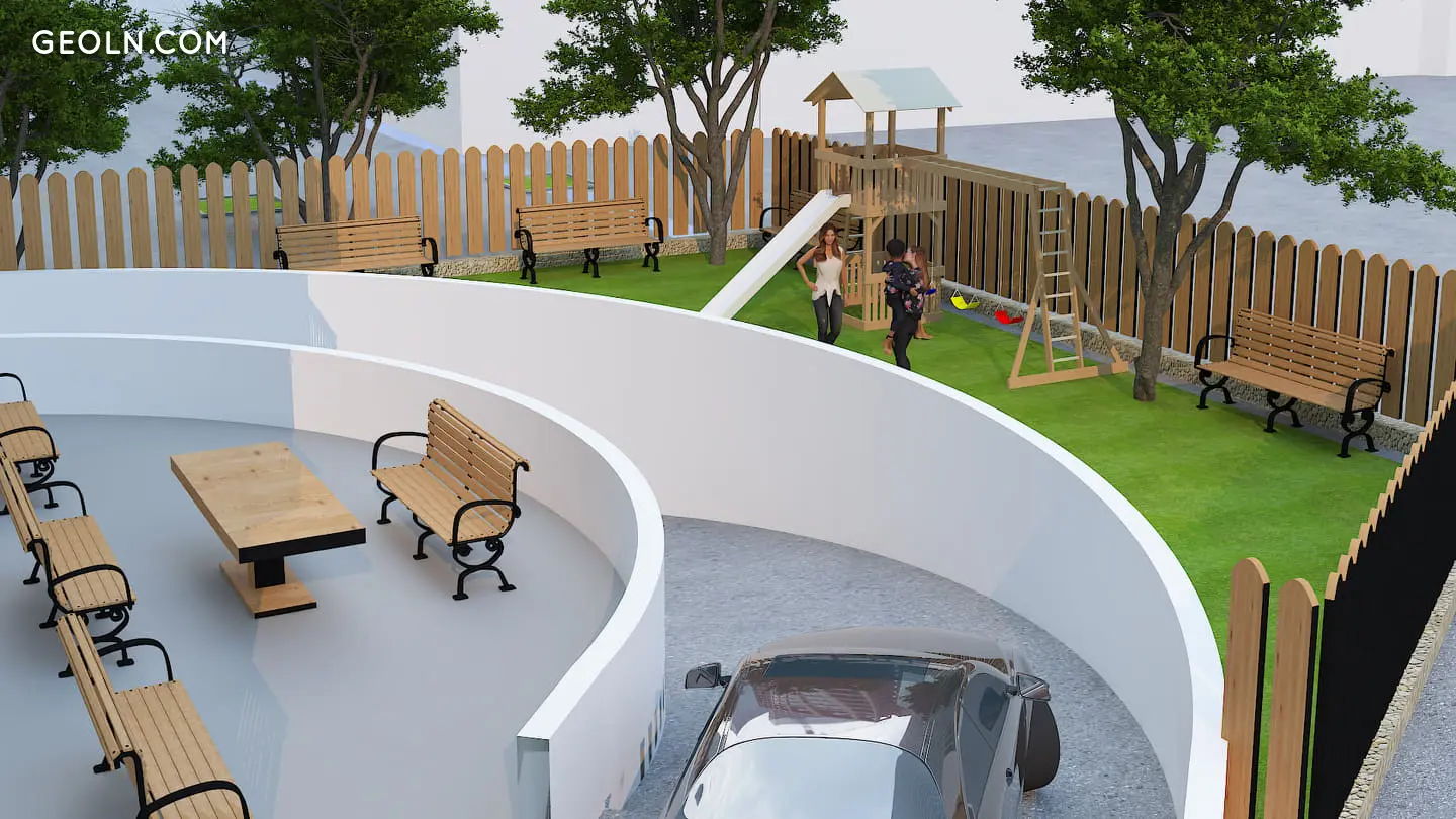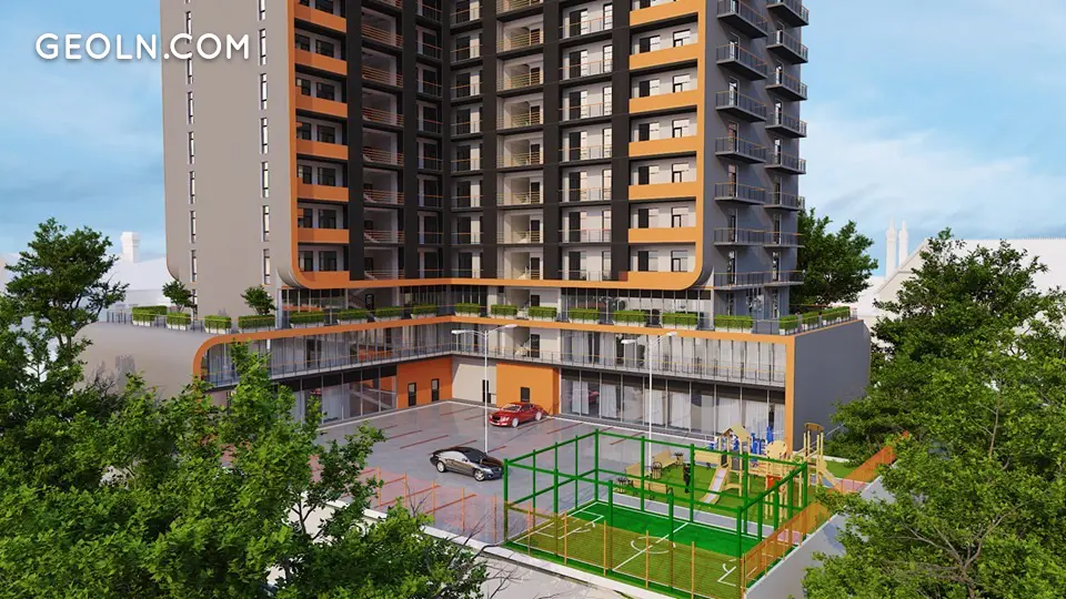 החצר תהיה מעוצבת לחלוטין. נבנים מגרש משחקים גדול עם נדנדות ומגלשות ואזור עם מכשירי תרגיל רחוב. מסודרים אזורי בילוי, מגרש משחקים לכדורגל וספורט אחר. לתושבים יש חניה תת קרקעית וניתן למצוא חניה לאורחים לצד הבניין.