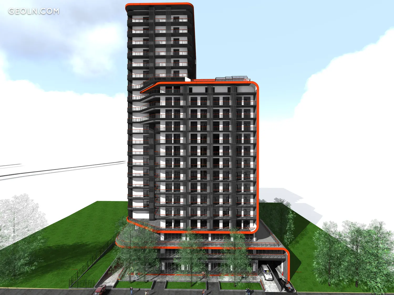 מגדל M הוא בית מחלקת עסקים עם שש עשרה עד עשרים ושניים קומות, מעוצב בסגנון מודרני. הכוח הדרוש והעמידות הסייסמית של הבניין החדש מסופקים על ידי מסגרת בטון מזוין ותשתית מונוליטית מוצקה. הקירות החיצוניים מבודדים בנוסף עם מבודד חום ידידותי לסביבה.